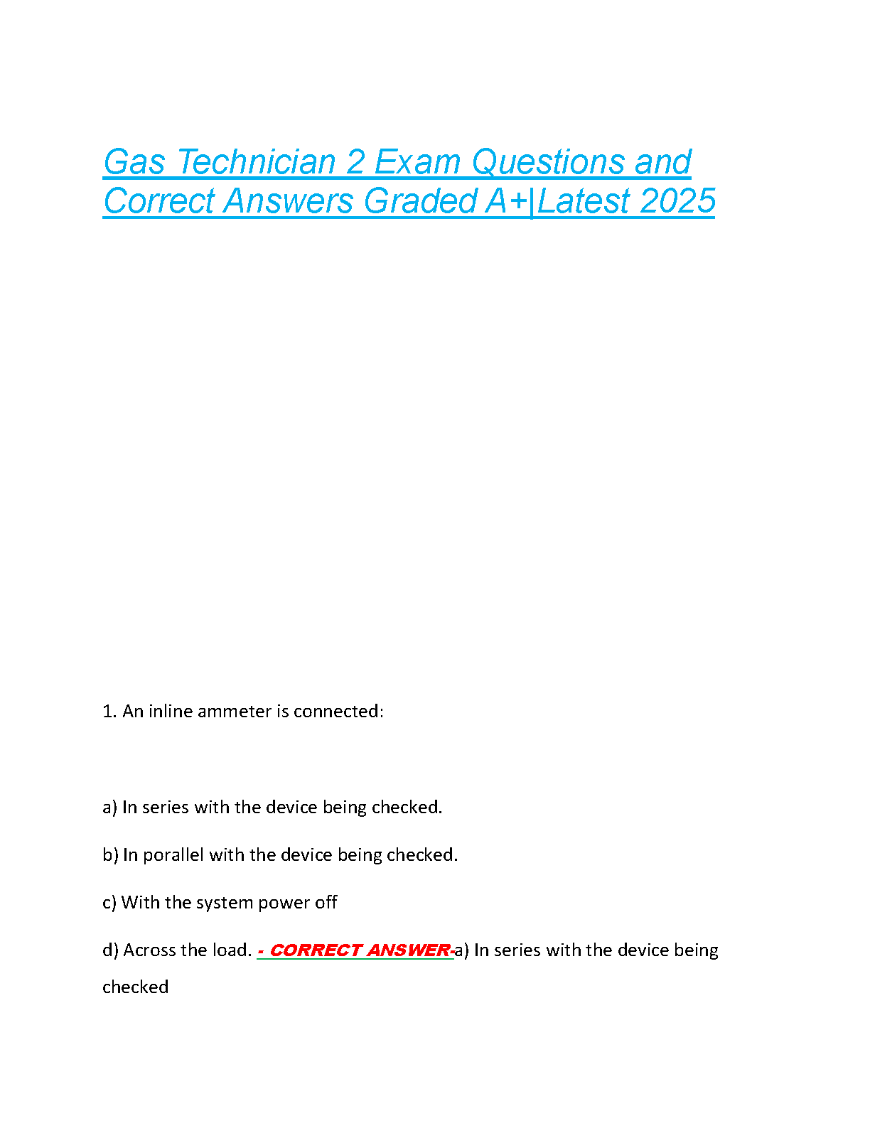 Ace your Gas Technician 2 (G2) certification with our comprehensive 2025 test bank. This essential study guide features a complete collection of the latest exam questions, each paired with a verified and correct answer. Designed to mirror the actual G2 exam format, this resource is your key to mastering the concepts and passing on your first attempt. Boost your confidence and achieve an A+ grade with this up-to-date preparation tool.
