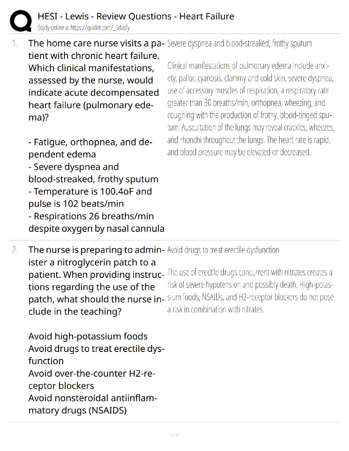 HESI Exit Exam Test Bank for Lewis's Medical-Surgical Nursing, 12th Edition by Harding, Kwong & Roberts | Heart Failure Review Questions & Answers