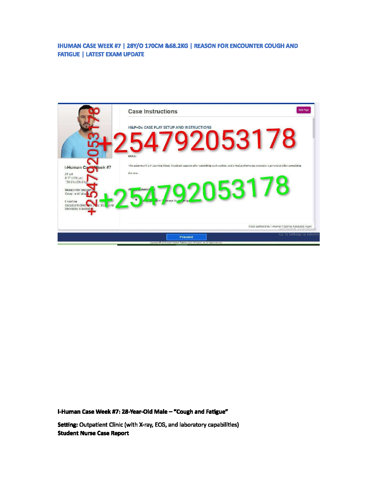 Ace your nursing simulation with the latest 2025/2026 guide for the i-Human Case Week #7. This resource provides a detailed student nurse case report for a 28-year-old male presenting with cough and fatigue in an outpatient clinic setting. Follow the complete case from initial encounter to diagnosis, utilizing X-ray, ECG, and laboratory data. This comprehensive report is your key to mastering the i-Human platform, passing your exams on the first attempt, and avoiding costly resits.