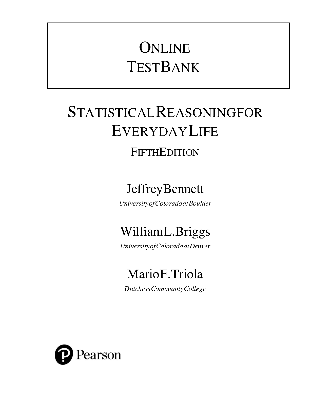 Test Bank for Statistical Reasoning for Everyday Life, 5th Edition by Jeffrey Bennett, William L. Briggs, and Mario F. Triola