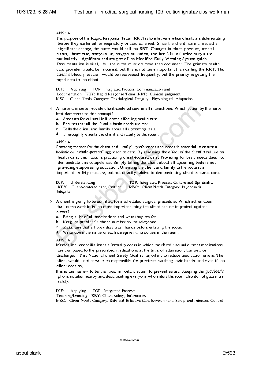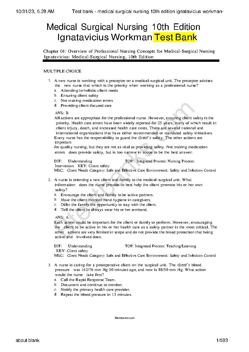 Test Bank for Medical-Surgical Nursing, 10th Edition by Donna D. Ignatavicius, M. Linda Workman, Cherie R. Rebar & Nicole M. Heimgartner