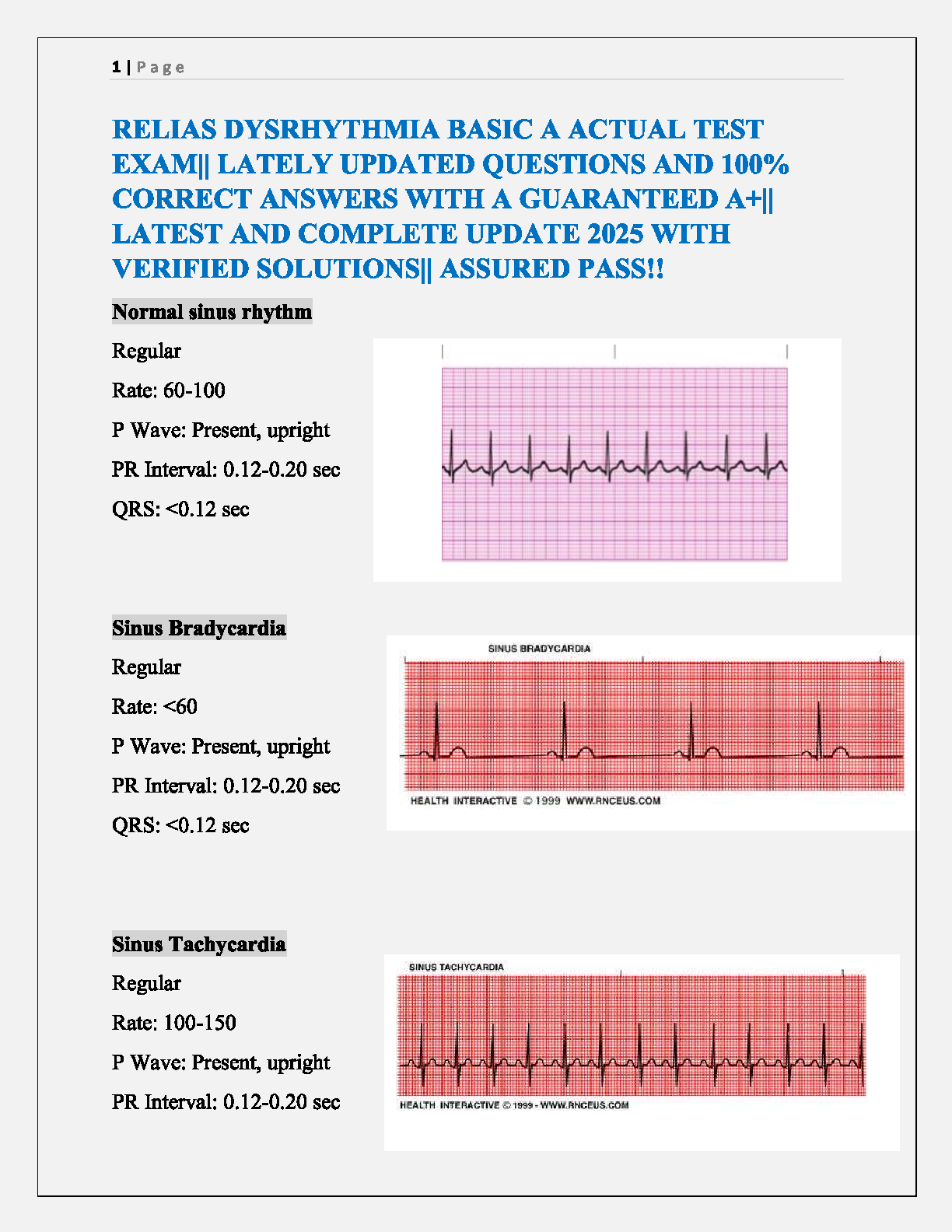 Relias Dysrhythmia Basic A Test Exam 2025/2026: Comprehensive Q&A with 100% Correct, Verified Answers for Guaranteed A+ Success