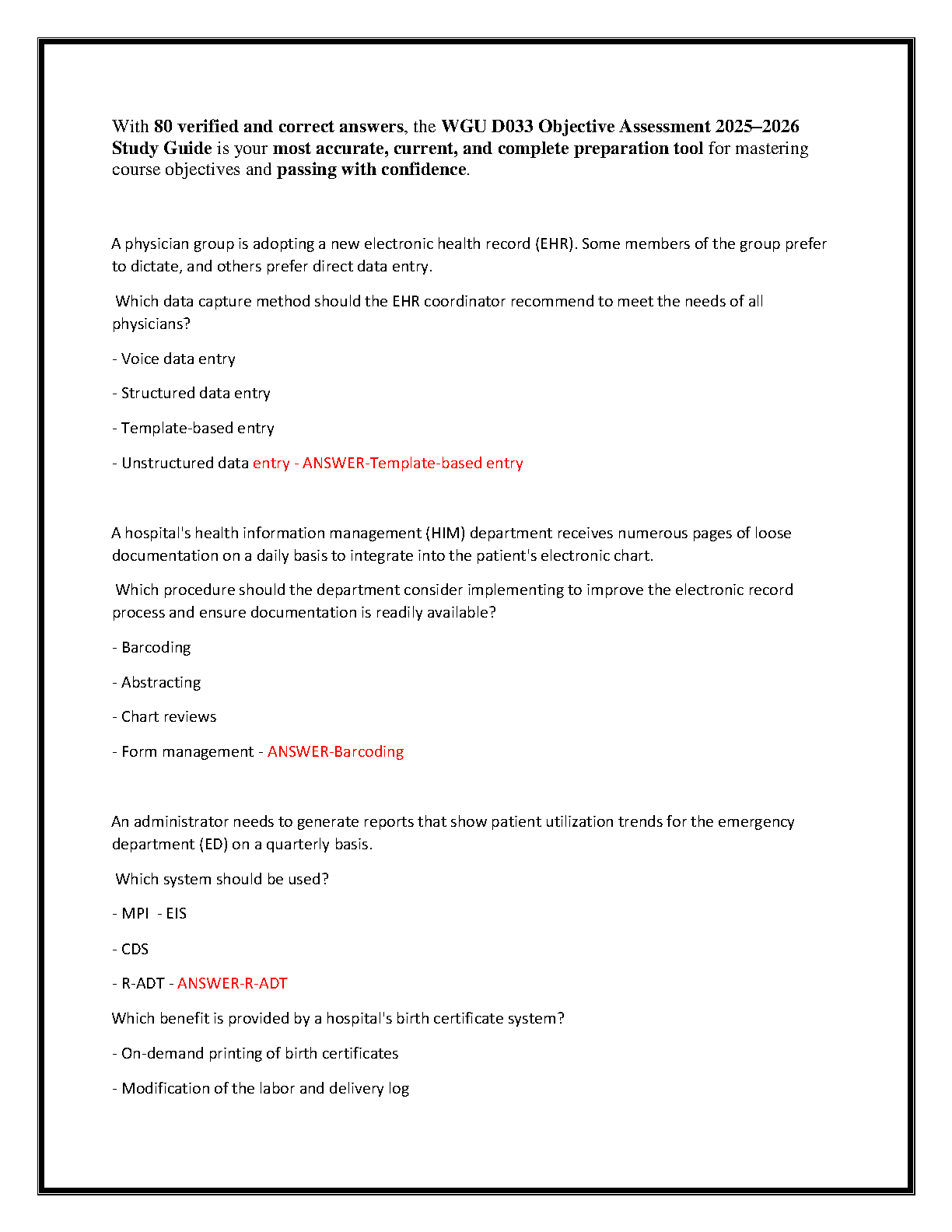 Ace Your WGU D033 Exam: The Ultimate 2025-2026 Test Bank with 80 A+ Graded Questions and Verified Answers