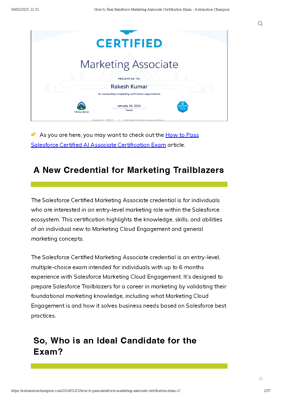 Unlock your potential and become a Salesforce Certified Marketing Associate with our expertly crafted exam preparation guide, fully updated for 2025/2026. This resource is designed to help you master the key concepts and pass your certification exam on the very first attempt. Say goodbye to exam anxiety and resits by leveraging proven study strategies from a newly minted associate. Get your guide today and take the next step in your Salesforce career!