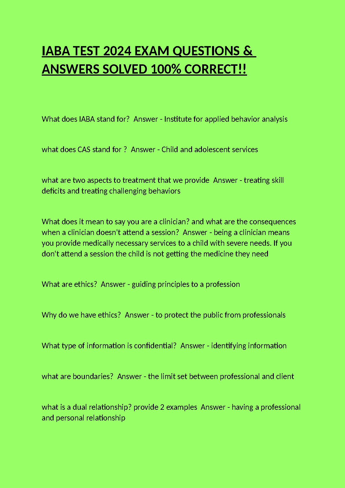 IABA 2024 Certification Exam Test Bank: A Complete Guide with Verified Questions and Detailed Answers