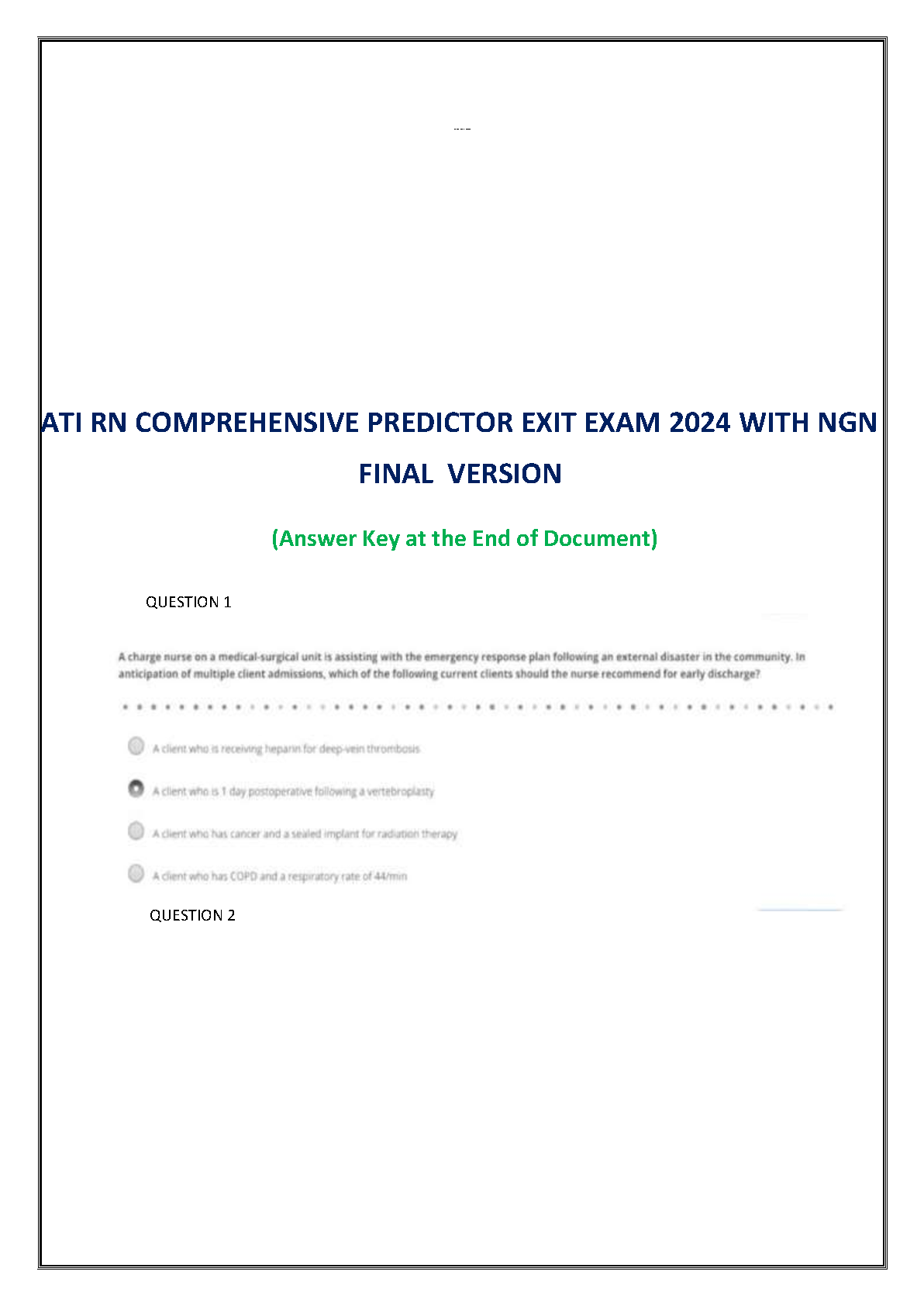 Pass Your Exit Exam: ATI RN Comprehensive Predictor 2024 NGN Final Version Test Bank | Complete Questions & Answers