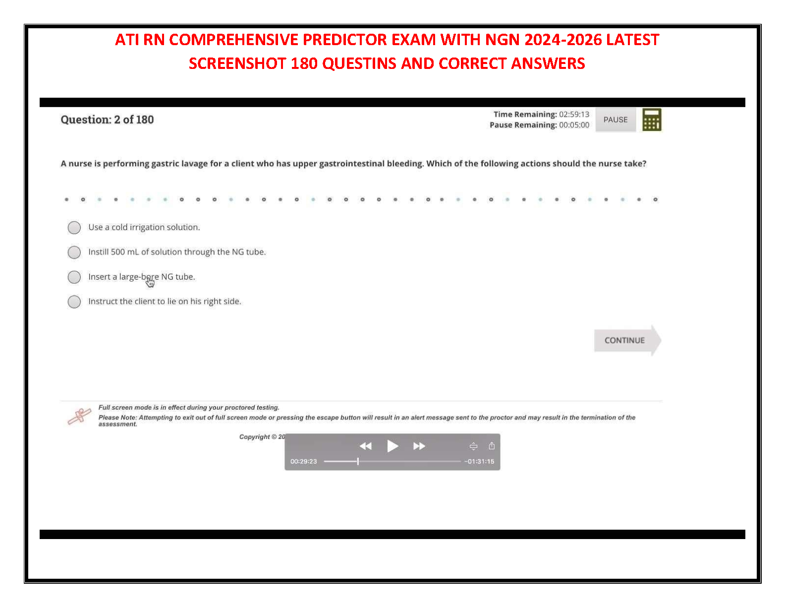 Master the ATI RN Comprehensive Predictor Exam with our latest 2024-2026 NGN Test Bank. This essential study guide features a complete set of 180 practice questions, each with a verified and correct answer. Designed to mirror the actual exam format, including Next Generation NCLEX (NGN) style items, this resource is your key to identifying knowledge gaps and building confidence. Stop stressing and start preparing effectively. Our test bank provides the targeted practice you need to pass the ATI Predictor on your very first attempt and take the next step in your nursing career with certainty. Download now for instant access to your pathway to success!