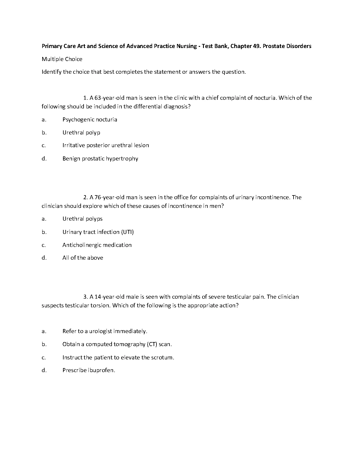 Primary Care Art and Science of Advanced Practice Nursing - Test Bank, Chapter 49. Prostate Disorders