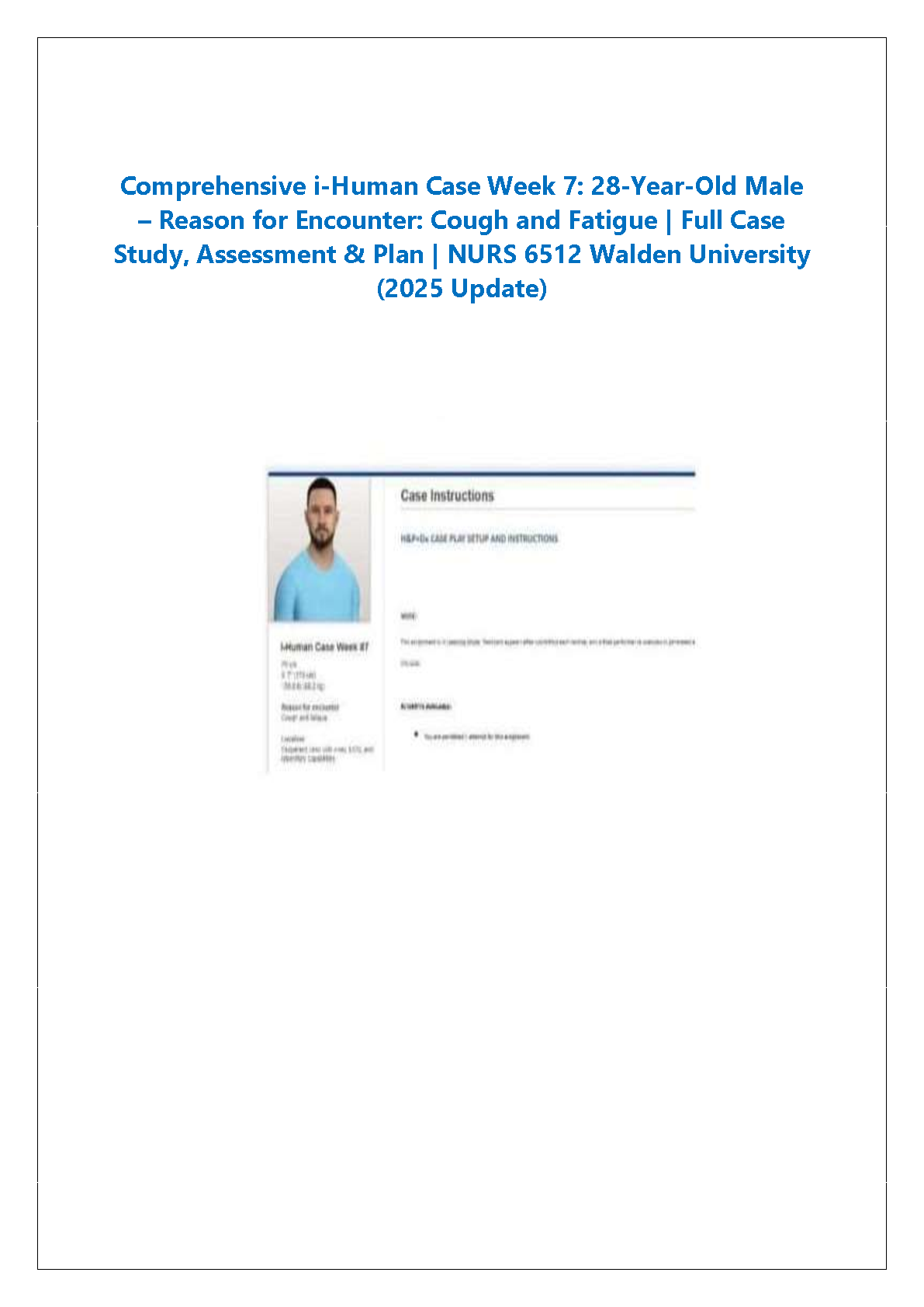 NURS 6512 i-Human Case Week 7: 28-Year-Old Male with Cough & Fatigue | Complete Case Study & Plan | Walden University | 2025/2026 Latest Guide to Pass