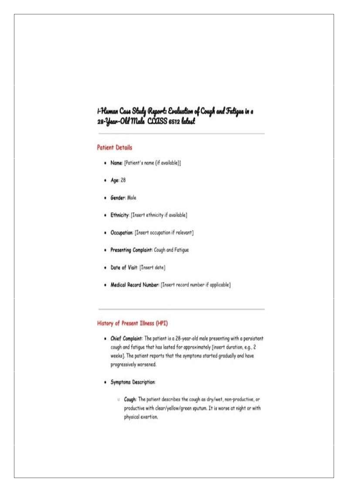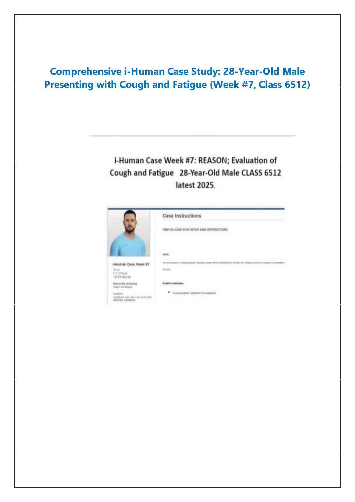 i-Human Case Study Week 7: Comprehensive Evaluation of Cough and Fatigue in a 28-Year-Old Male (CLASS 6512) | 2025/2026 Edition to Pass Exams on First Attempt