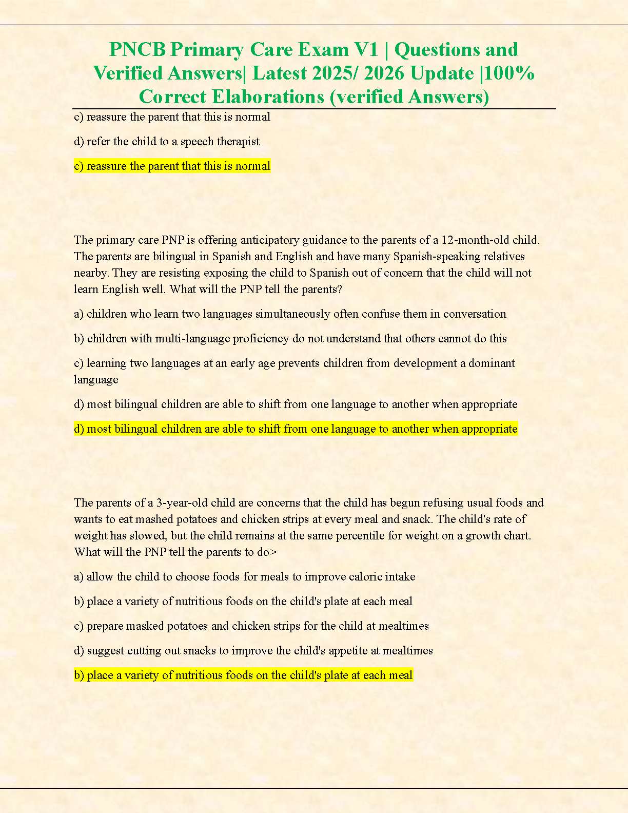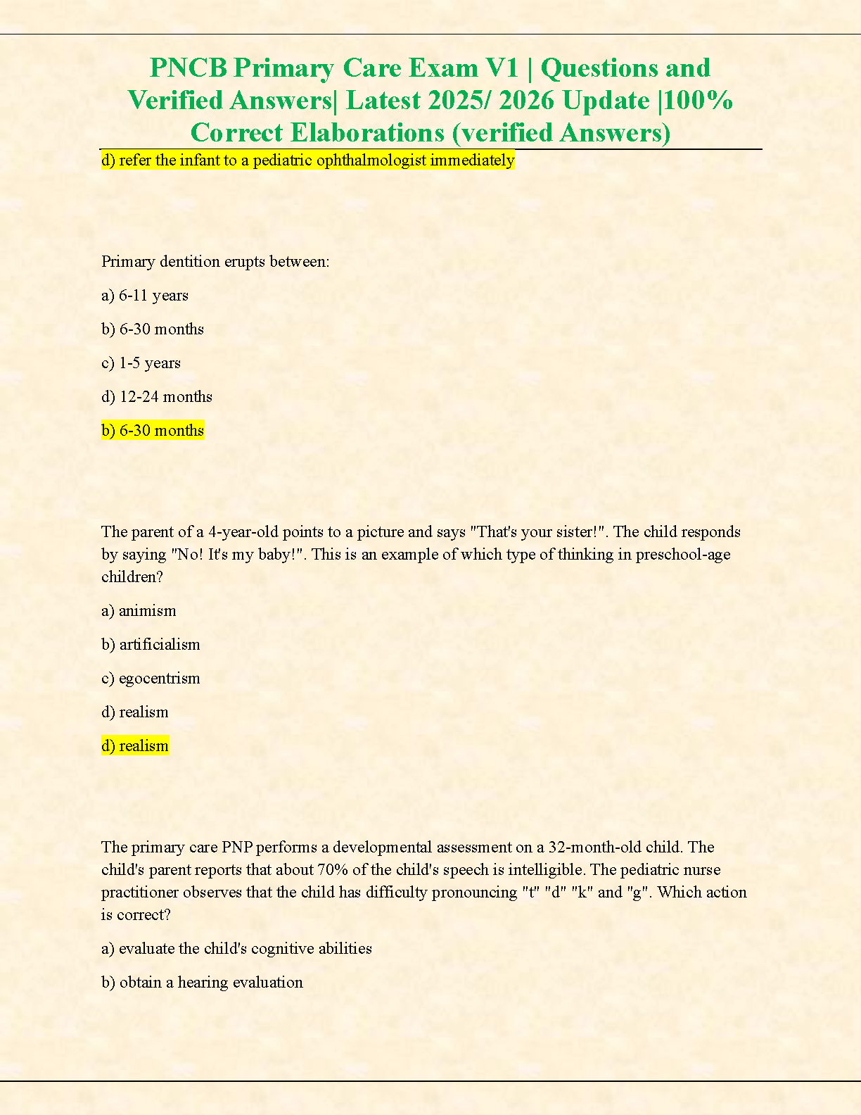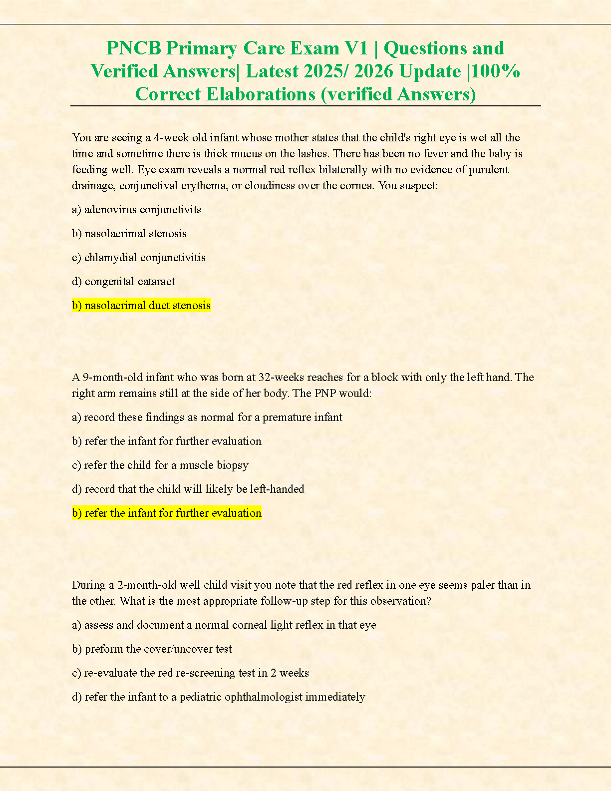 PNCB Primary Care CPNP-PC Exam V1 Elaborations: Comprehensive Q&A Test Bank | 2025/2026 Edition for First-Attempt Success