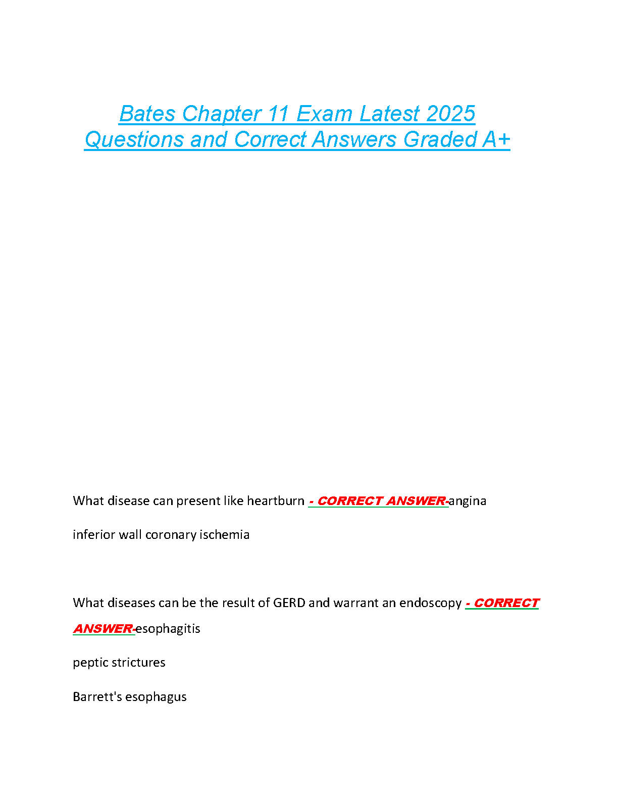 Excel in your studies with the definitive test bank for Chapter 11 of 'Bates' Guide to Physical Examination and History Taking,' 13th Edition. Authored by experts Bickley, Szilagyi, Hoffman, and Soriano, this resource is packed with A+ graded questions and verified answers covering key topics like the abdomen, GERD, and differential diagnoses. This is the ultimate study companion designed to help you master the material, pass your exams confidently on the first attempt, and avoid resits.