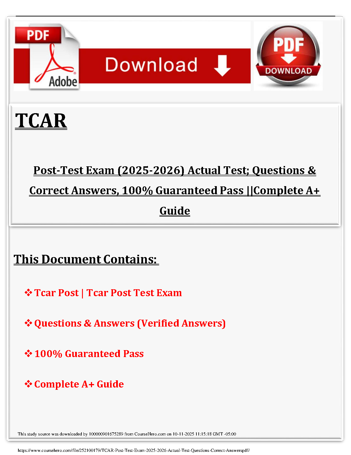 TCAR Post-Test Exam Bank 2025-2026 | Trauma Care After Resuscitation Actual Questions and Verified Answers Study Guide