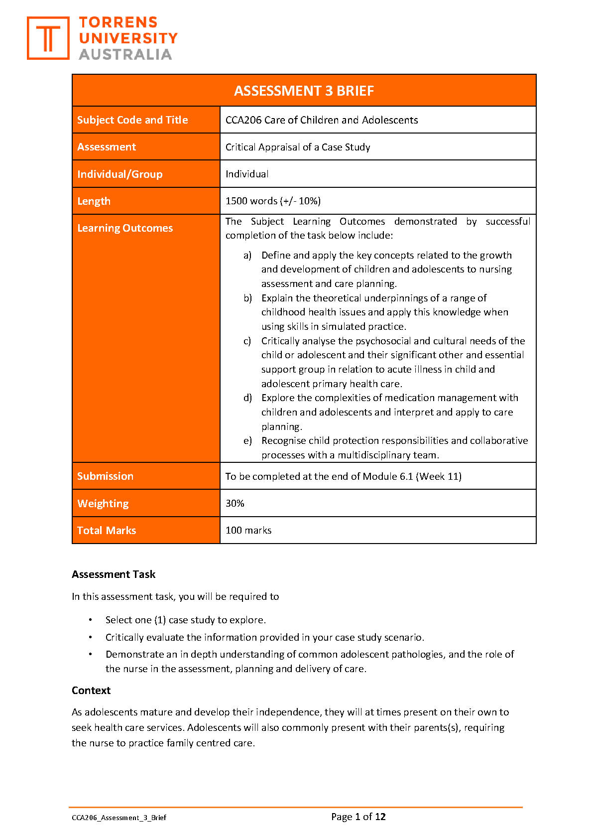 CCA206 Care of Children and Adolescents Assessment 3 Brief: Critical Appraisal of a Case Study - Verified Guide to Pass First Time (2025/2026)