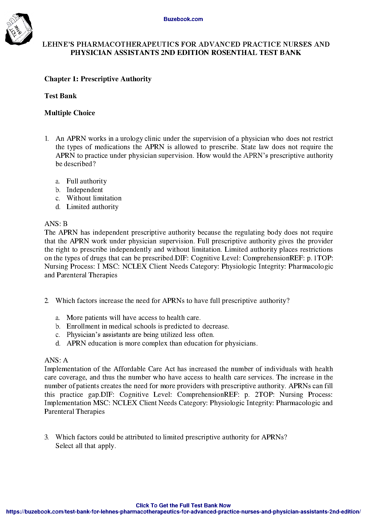 Master your pharmacology course with the official Test Bank for the 2nd Edition of Lehne's Pharmacotherapeutics for Advanced Practice Nurses and Physician Assistants. Authored by Rosenthal and Burchum, this essential study guide provides a comprehensive collection of exam-style multiple-choice questions complete with detailed answers and rationales. This resource is designed to help APRN and PA students effectively test their knowledge, grasp complex concepts, and confidently prepare for their exams. Instantly download and start studying to ace your course.