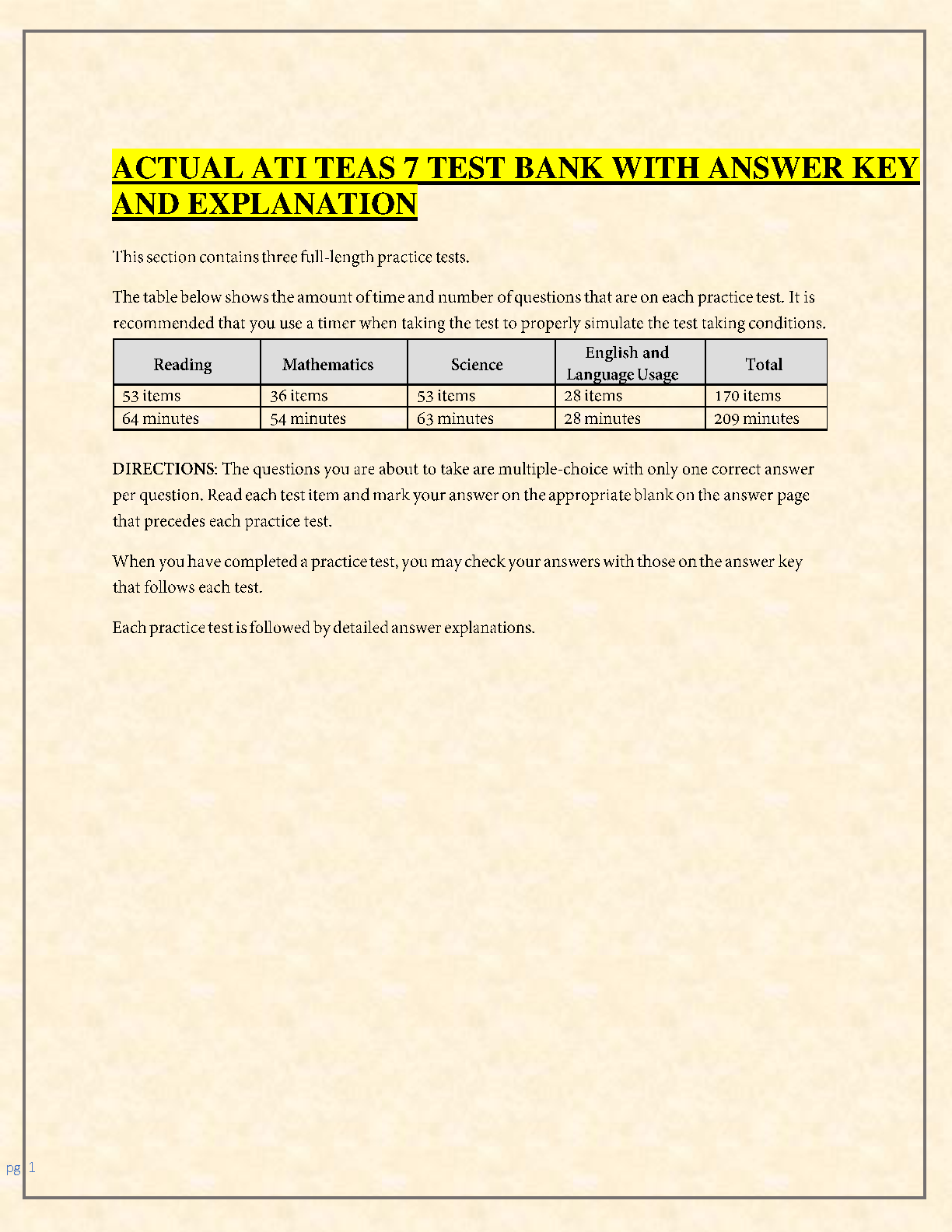 ATI TEAS 7 Test Bank by Assessment Technologies Institute (ATI) | 500+ Practice Questions & Answers with Rationales for Guaranteed First-Attempt Success