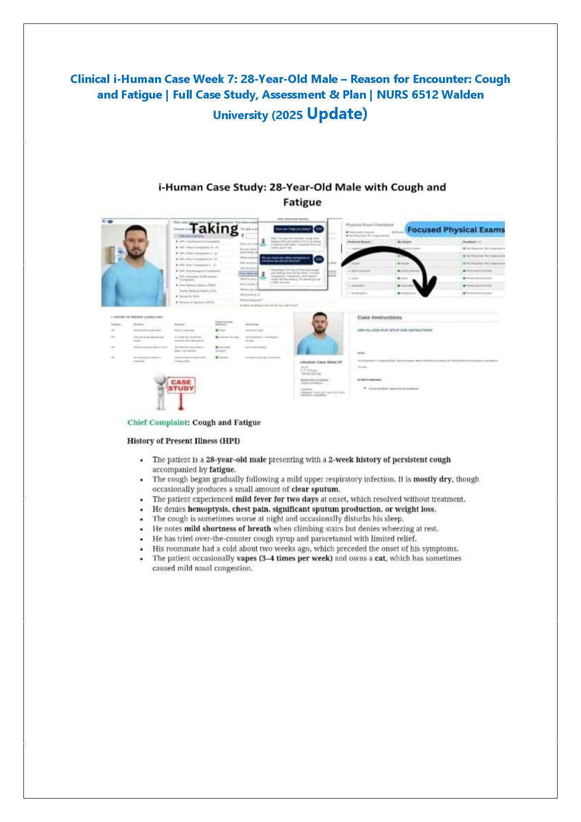 NURS 6512 i-Human Case Week 7: 28-Year-Old Male (Cough & Fatigue) | 2025/2026 Complete Study Guide to Pass Your Exam