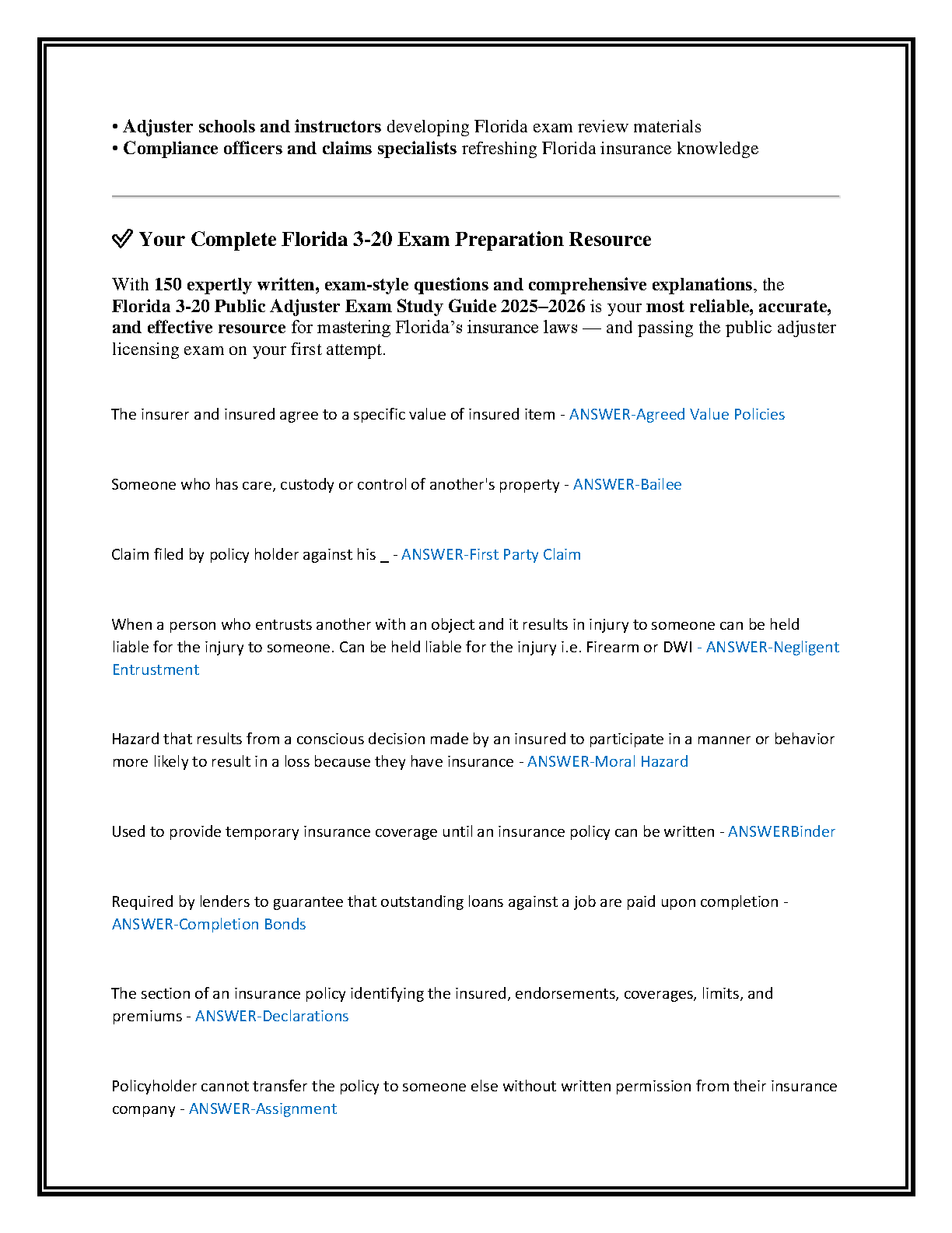 Master the Florida 3-20 Public Adjuster Exam 2025-2026: A-Grade Test Bank with 150 Questions and Expert Answers