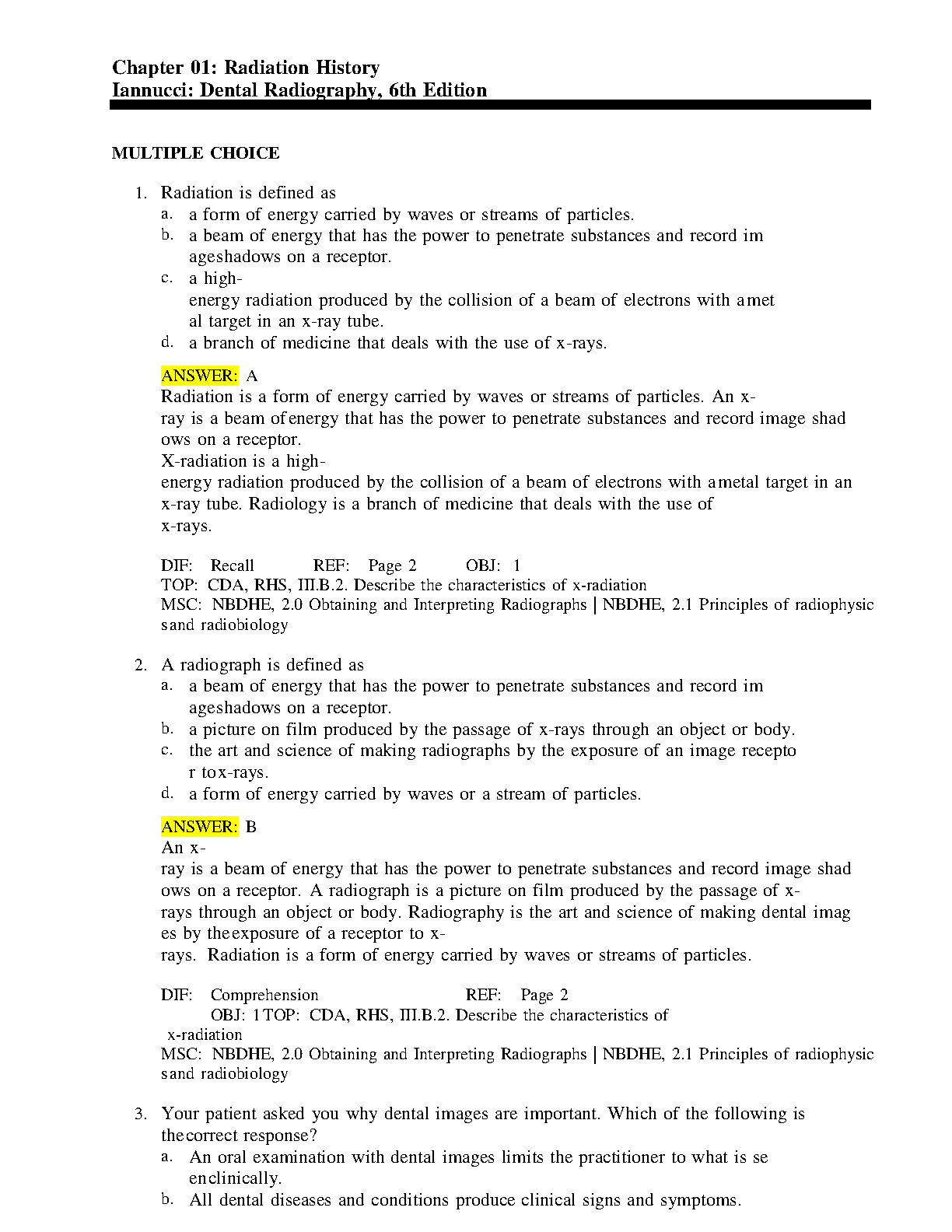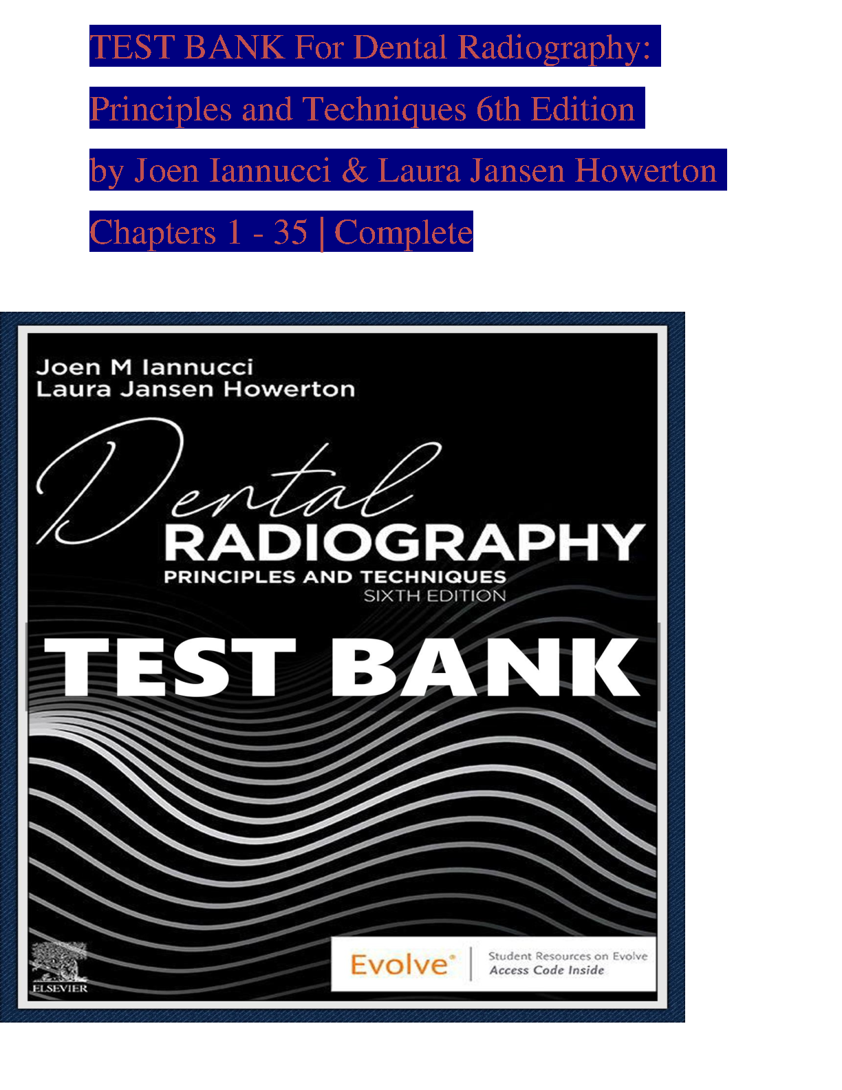 Test Bank for Dental Radiography: Principles and Techniques, 6th Edition by Joen M. Iannucci & Laura Jansen Howerton (Complete Chapters 1-35)