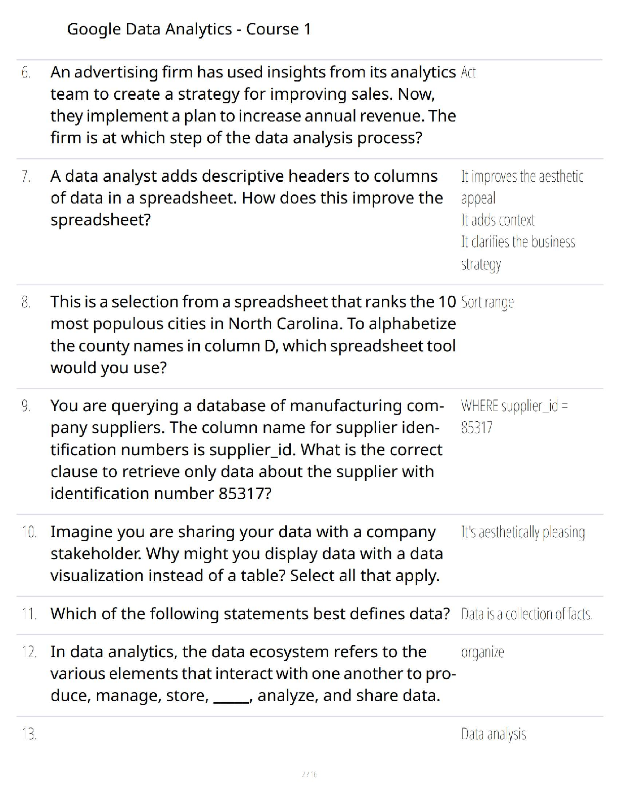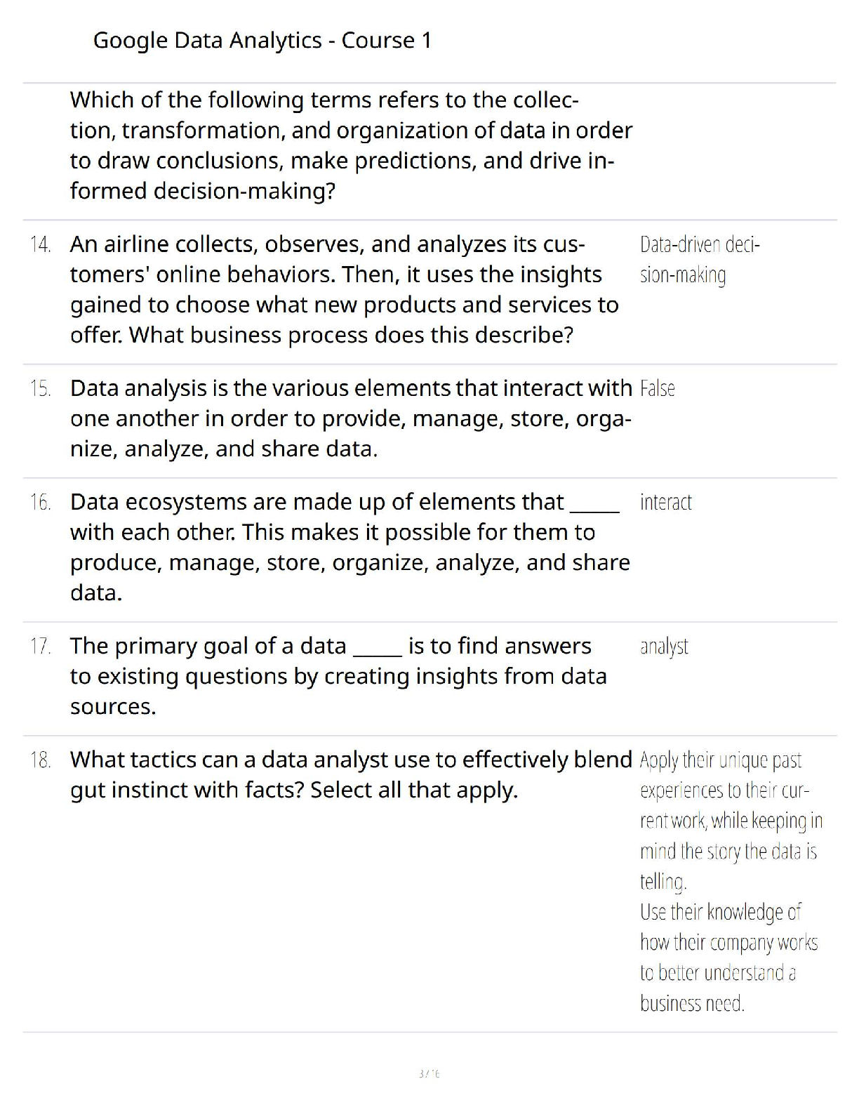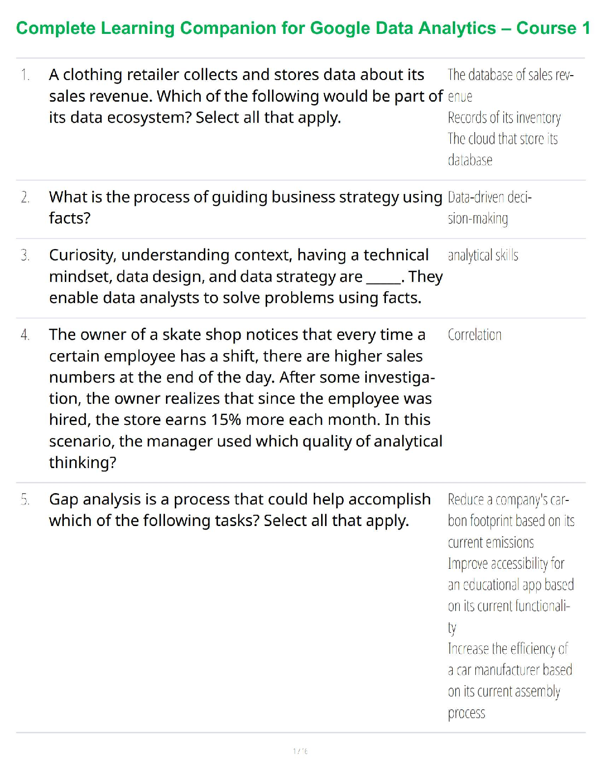 Google Data Analytics Certificate Course 1 Test Bank: Foundations Data, Data, Everywhere - Complete Q&A Study Guide by Google