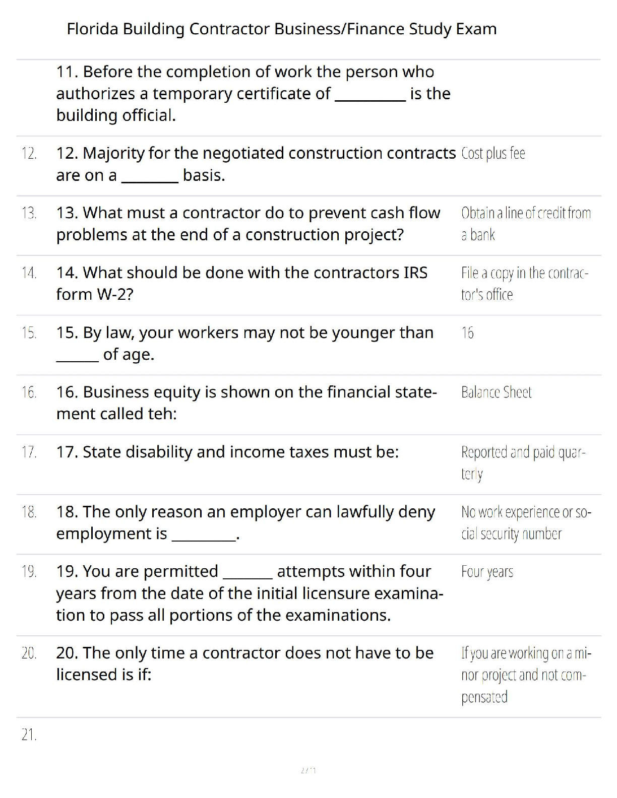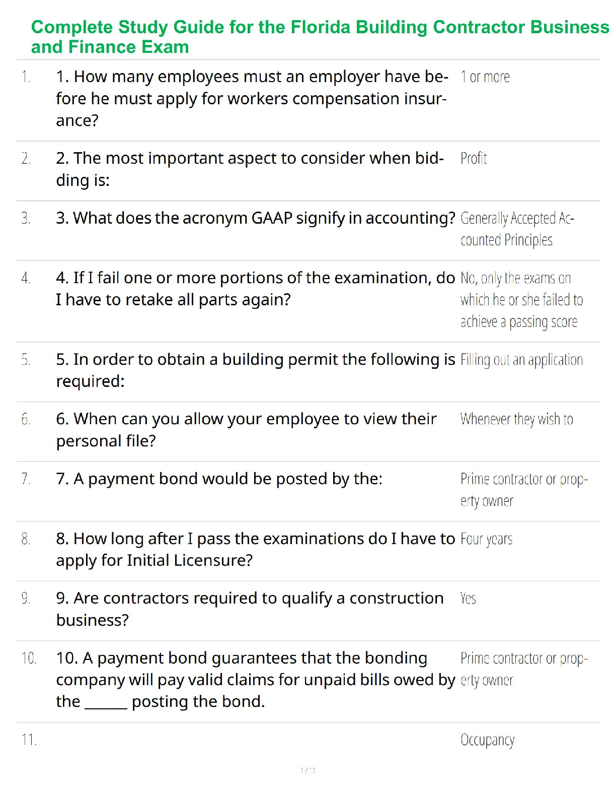 Ace your Florida Building Contractor Business and Finance Exam with confidence! This comprehensive study guide, updated for the 2025/2026 testing cycle, is meticulously designed to help you master all essential topics. It features a detailed question-and-answer format covering crucial areas such as workers' compensation, bidding strategies, accounting principles (GAAP), bonding, and licensure requirements. Eliminate exam anxiety and avoid costly resits—this guide provides the critical knowledge you need to pass on your very first attempt and launch your contracting career.