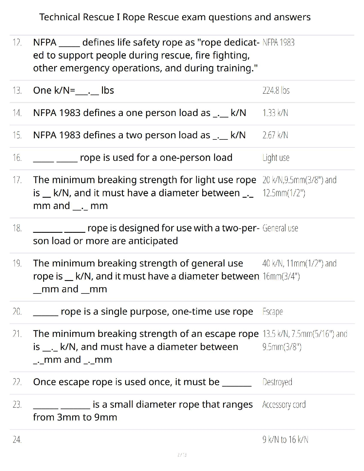 Ace your Technical Rescue I Rope Rescue Exam on the first try with this definitive test bank and study guide. This comprehensive resource is packed with essential questions and verified answers covering critical topics based on NFPA standards, including NFPA 1006, NFPA 1670, and NFPA 1983. Master key concepts such as the properties of kernmantle rope, the differences between static and dynamic ropes, tensile strength, and safe operating procedures. This study guide is meticulously designed to help you build confidence, identify knowledge gaps, and ensure you are fully prepared to pass your certification. Stop worrying about resits and secure your qualification with this ultimate exam preparation tool.