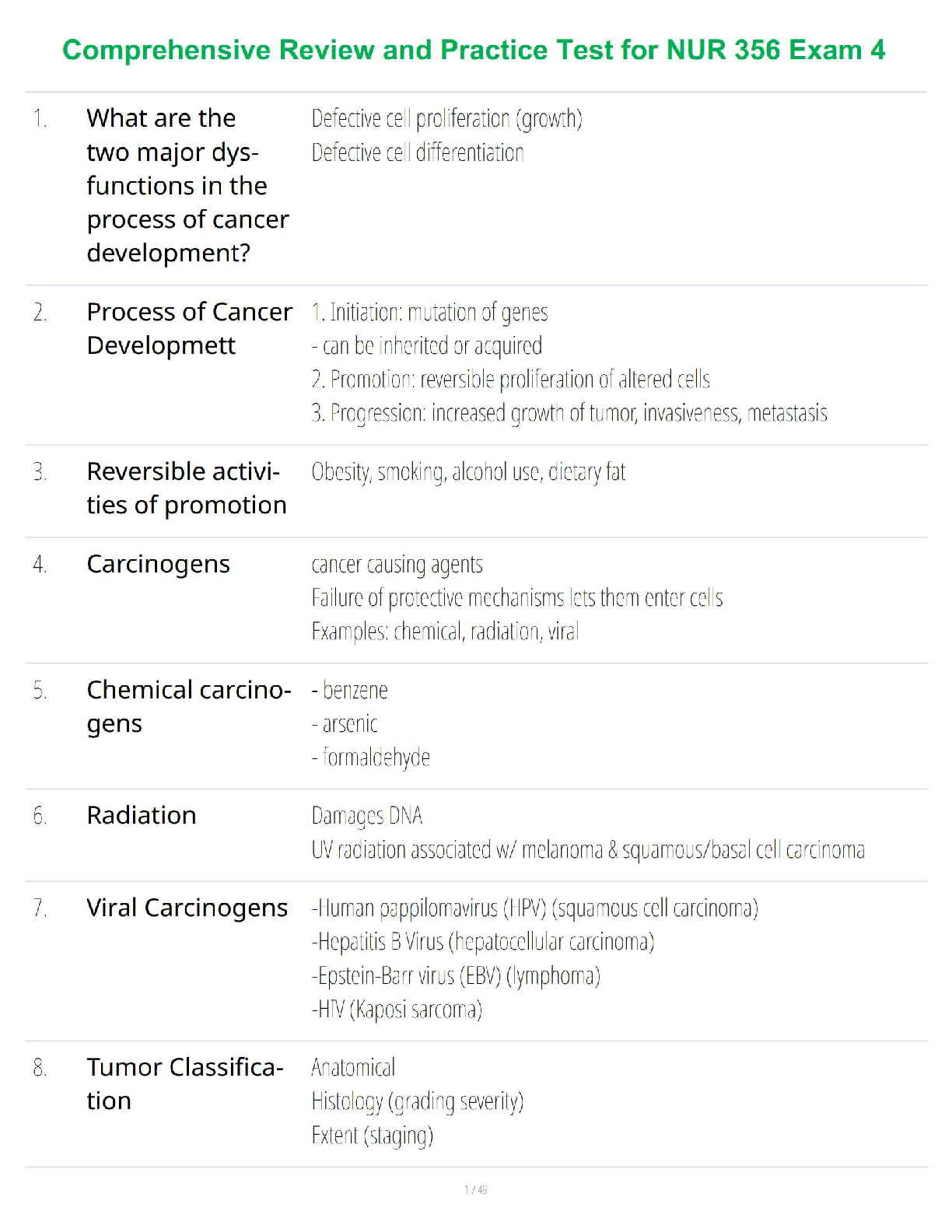 NUR 356 Exam 4 - Cancer/Oncology Comprehensive Review | Latest 2025/2026 Study Guide for First-Attempt Success