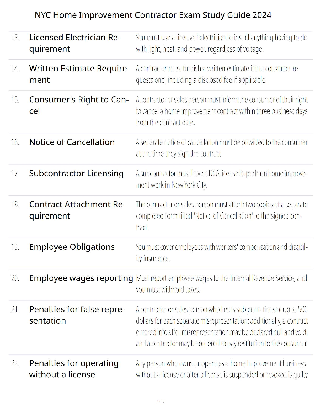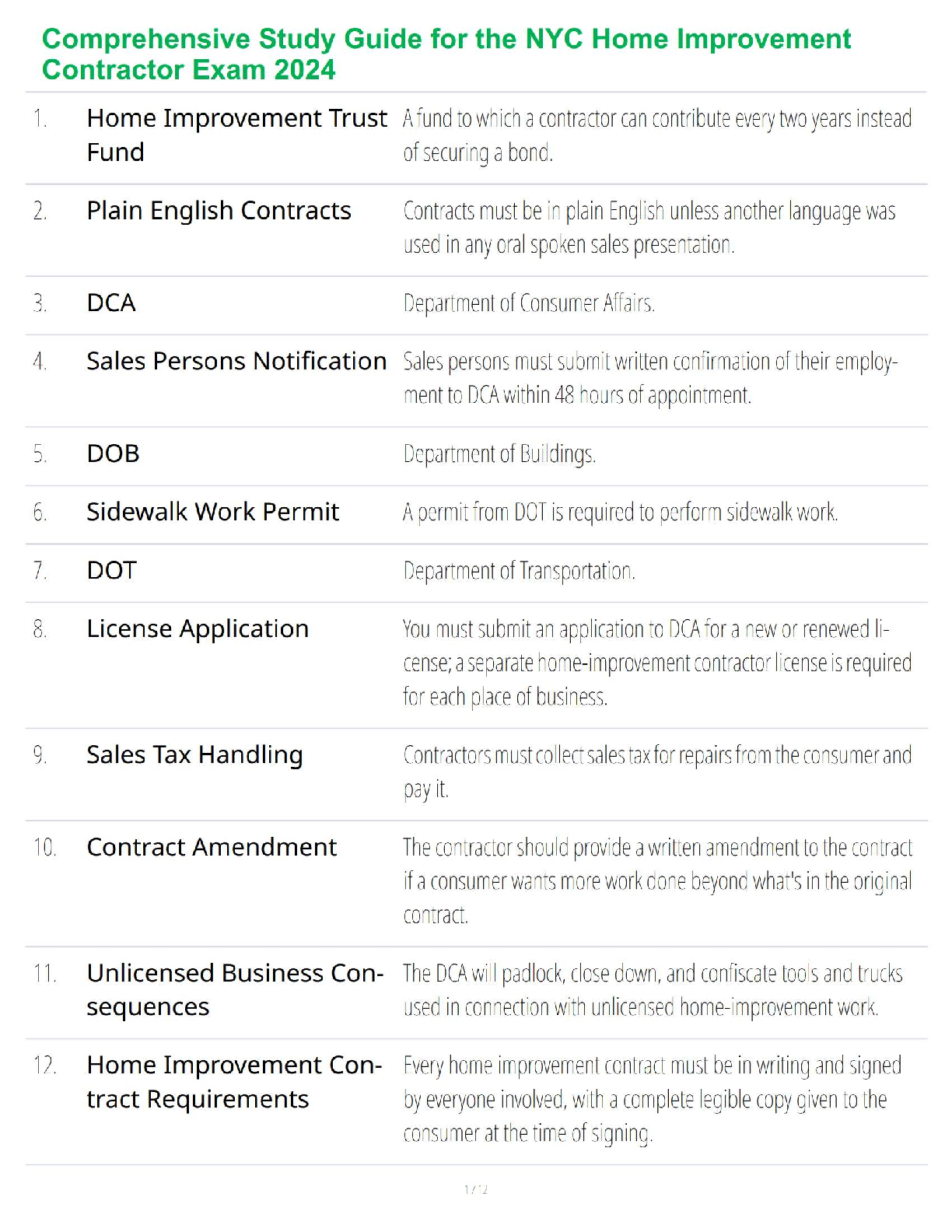 Ace your NYC Home Improvement Contractor Exam with our latest 2025/2026 comprehensive study guide! This 2024 edition is specifically designed to help you master all the essential topics and pass on your very first attempt, eliminating the stress and cost of resits. Our detailed elaborations cover critical areas including DCA and DOB regulations, plain English contracts, license applications, sales tax handling, and much more. Get the ultimate exam preparation resource and secure your contractor license with confidence!