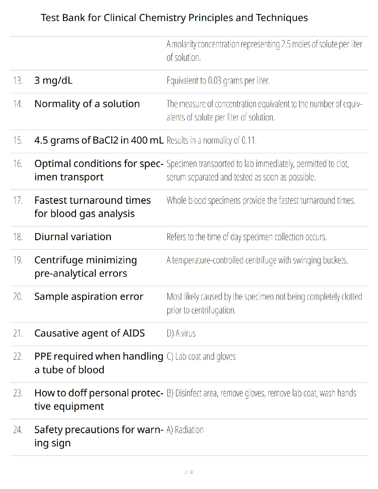 Test Bank for Clinical Chemistry: Principles, Techniques, and Correlations, 9th Edition by Michael L. Bishop, Edward P. Fody, and Larry E. Schoeff