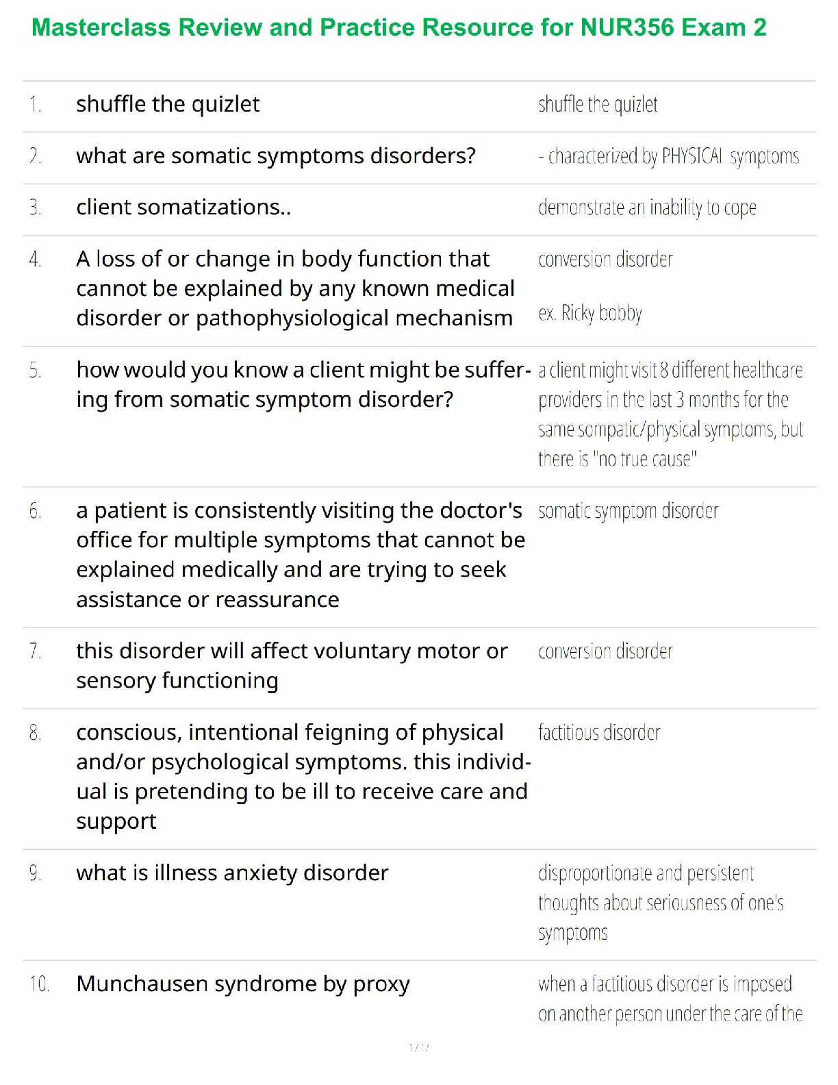 NUR356 Exam 2 Study Guide 2025/2026: Master Somatic Disorders & Pass on Your First Attempt
