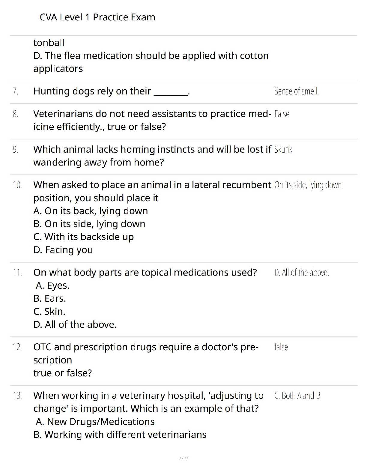 CVA Level 1 Fundamentals Test Bank: Comprehensive Practice Exam with Verified Answers to Ace Your Certified Veterinary Assistant Exam