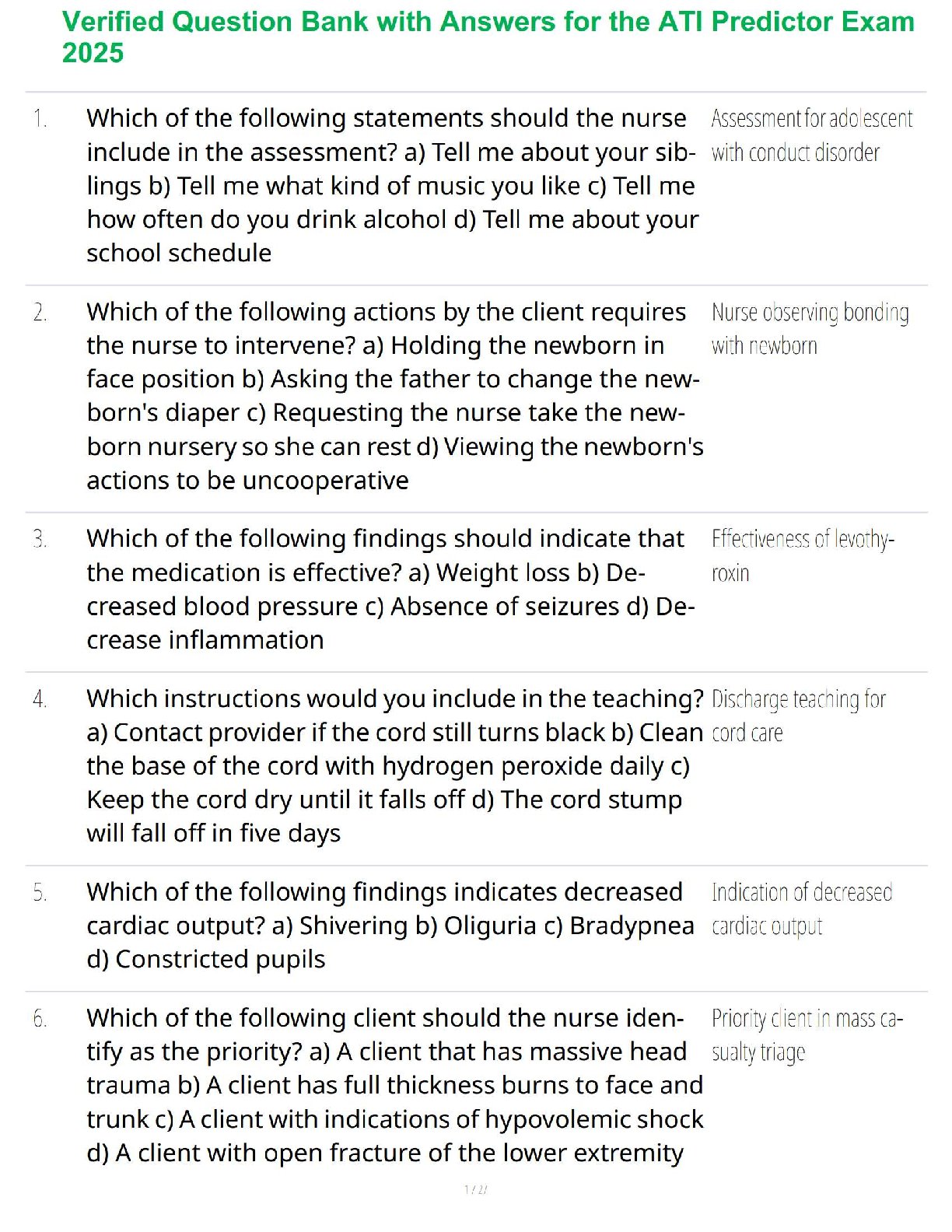ATI Predictor Exam 2025: Comprehensive Test Bank with Verified Questions and Answers