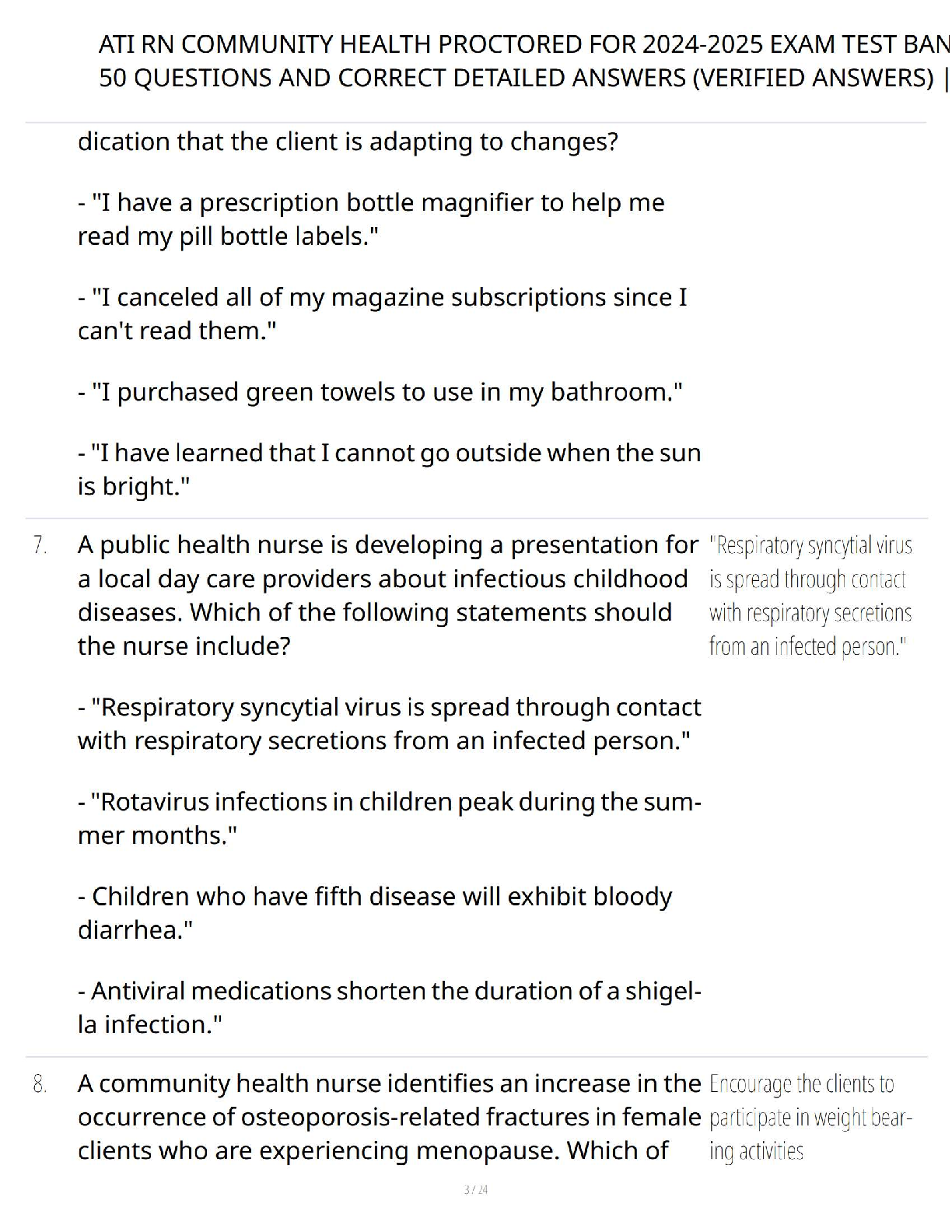 ATI RN Community Health Proctored Exam Test Bank 2024-2025 Edition | Complete Q&A for Nursing Students by ATI