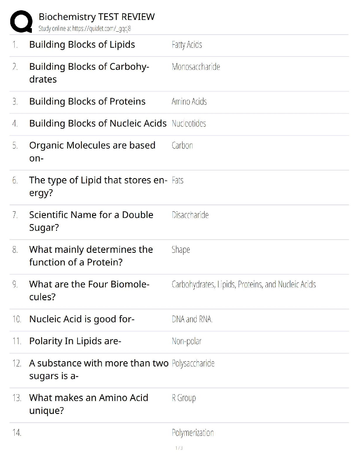 Unlock top grades in your biochemistry course with our expertly prepared test bank. This essential study guide features a complete set of questions and direct answers, covering foundational topics like the four major biomolecules (lipids, carbohydrates, proteins, nucleic acids), their monomers (fatty acids, monosaccharides, amino acids, nucleotides), and key concepts such as protein function and molecular composition. This test review is your ultimate tool for effective exam preparation and achieving academic success.
