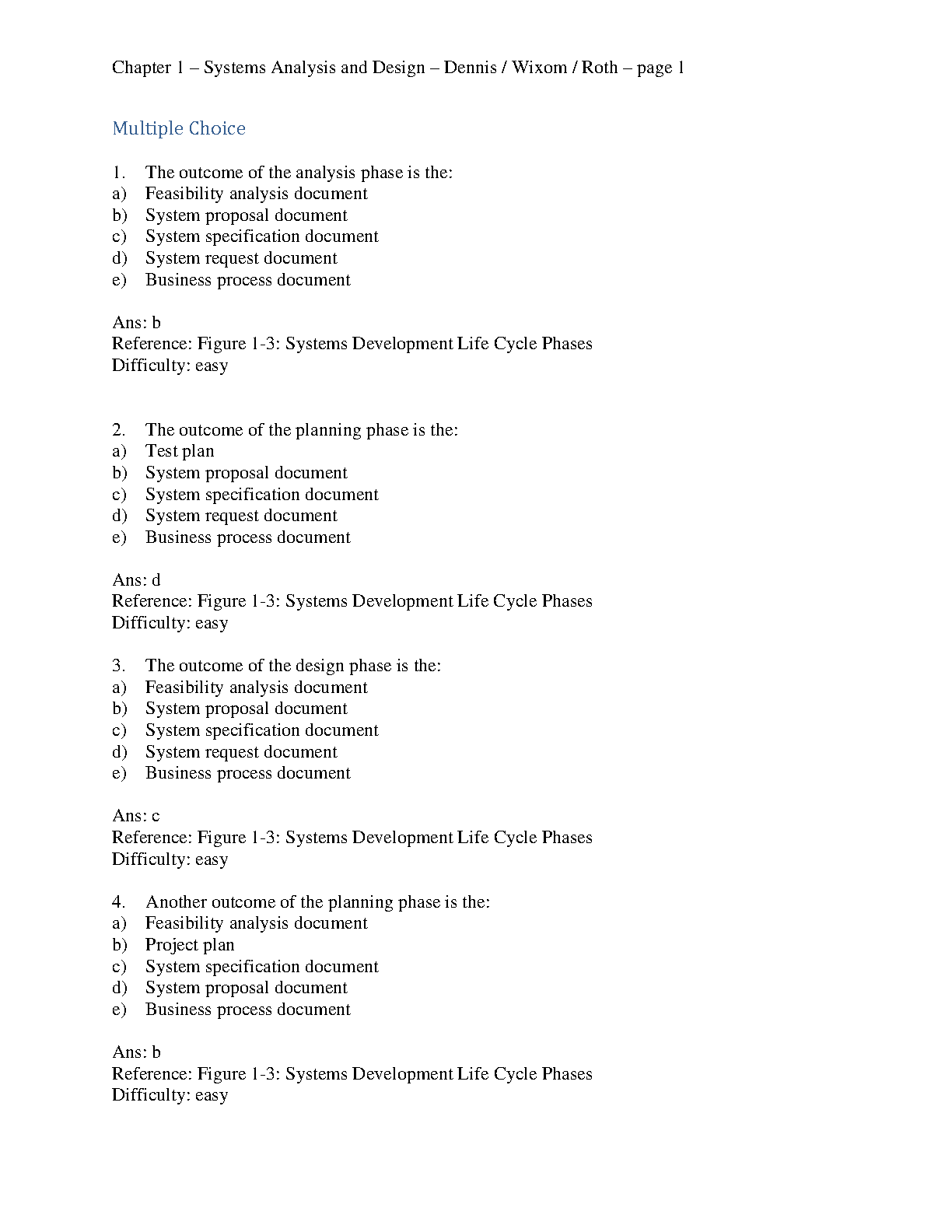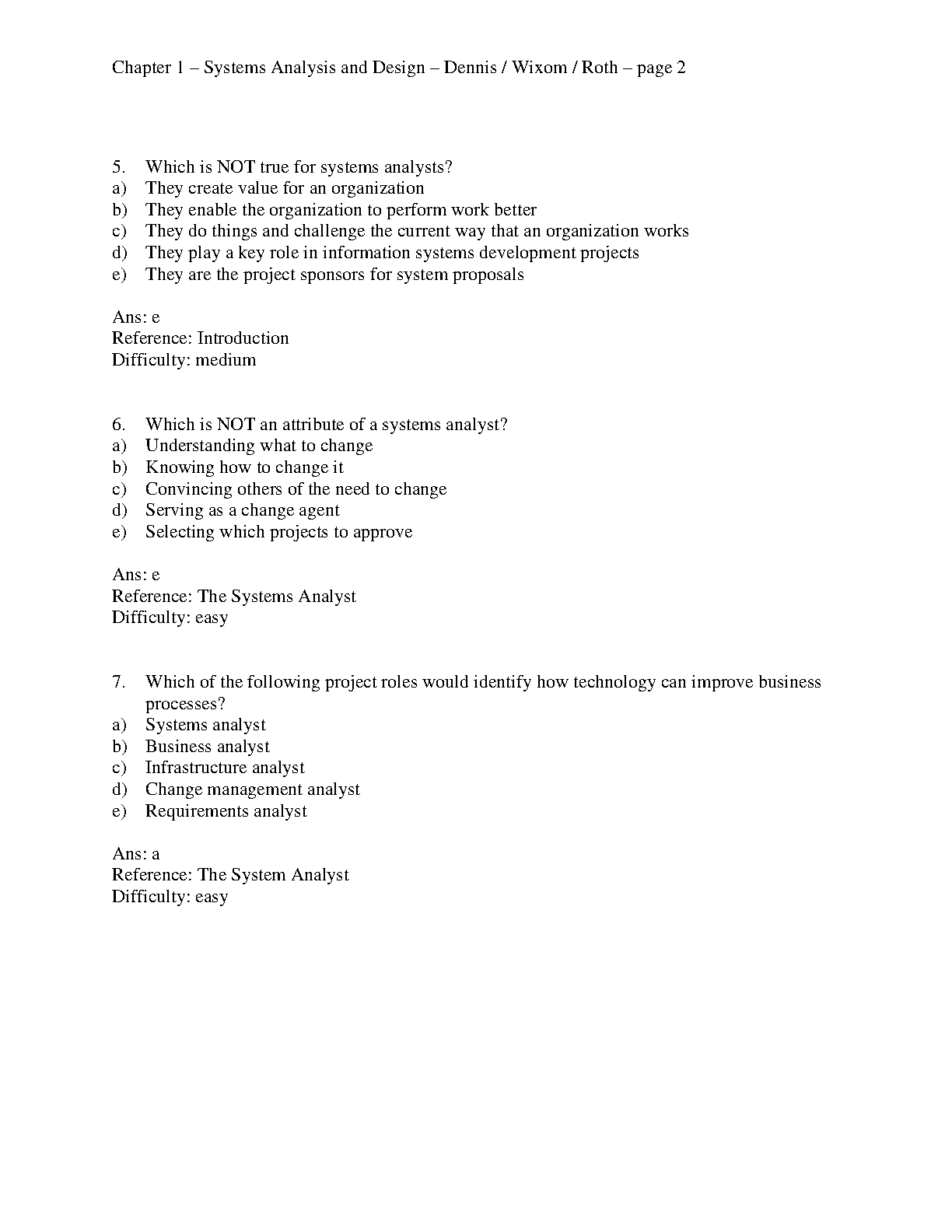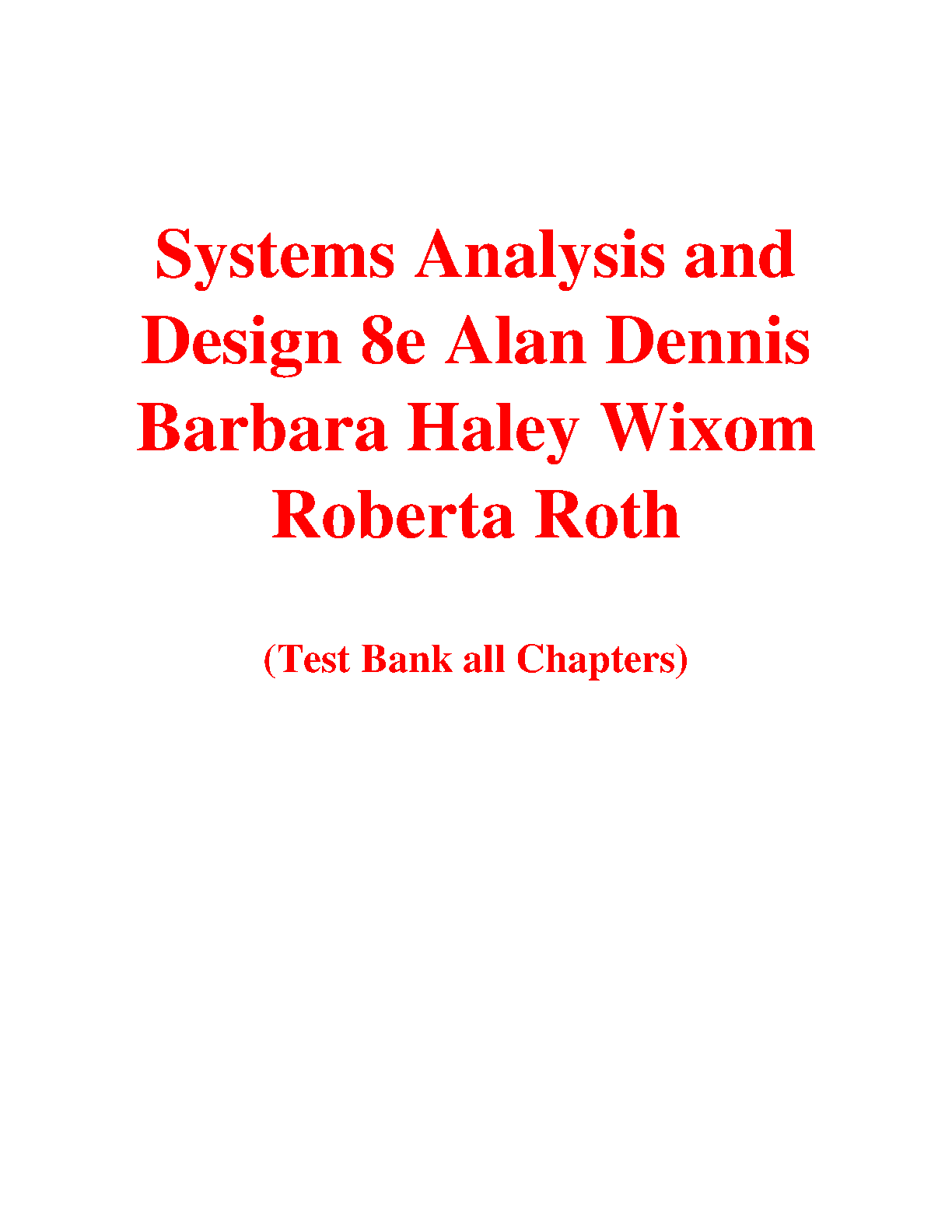 Test Bank for Systems Analysis and Design, 8th Edition by Alan Dennis, Barbara Haley Wixom, and Roberta M. Roth