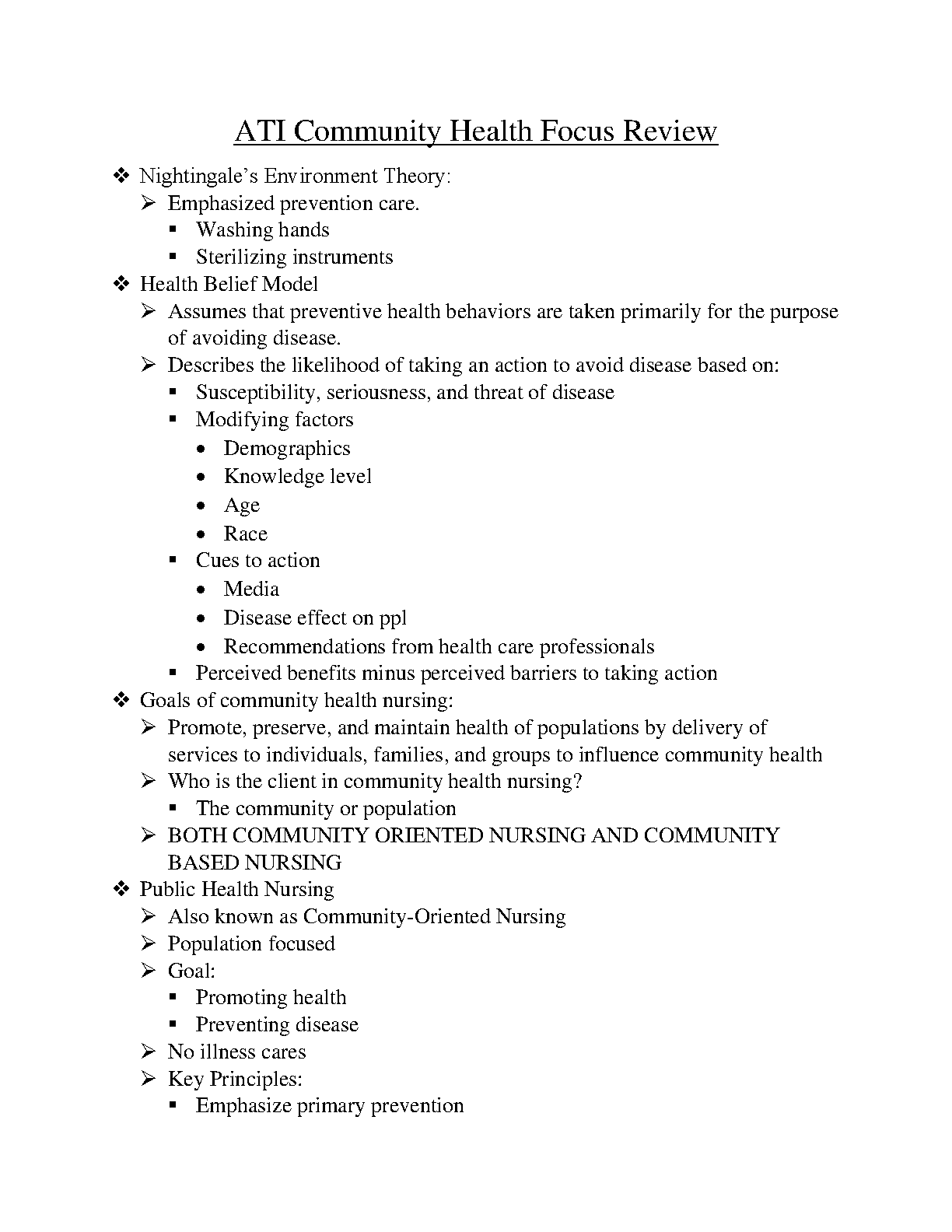 Prepare to excel in your community health nursing course with our comprehensive ATI Community Health Focus Review, fully updated for the 2025/2026 academic year. This essential study guide distills complex topics into easy-to-understand points, covering critical areas like Nightingale's Environment Theory, the Health Belief Model, the core goals of community health nursing, and the distinctions between community-oriented and community-based care. Designed specifically for nursing students aiming to pass their exams on the very first attempt, this resource provides a laser-focused overview of the most-tested concepts. Stop worrying about resits and start mastering the material you need for success.