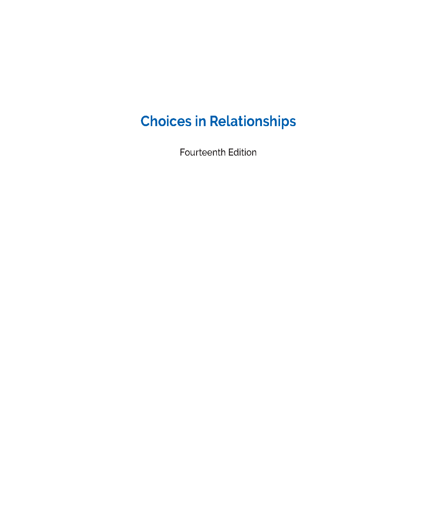 Test Bank for Choices in Relationships, 14th Edition by David Knox, Caroline Schacht, I. Joyce Chang