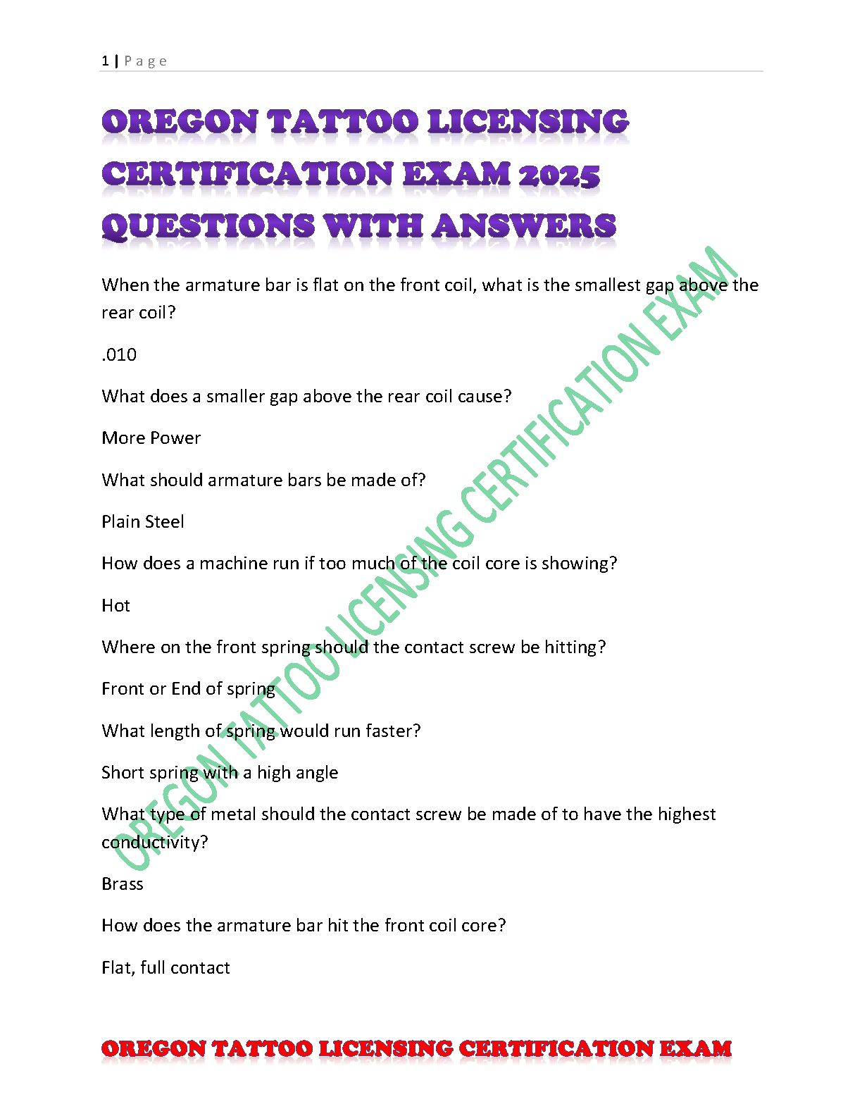 Oregon Tattoo Licensing Exam 2025 Test Bank: Comprehensive Questions and Answers to Pass Your Certification
