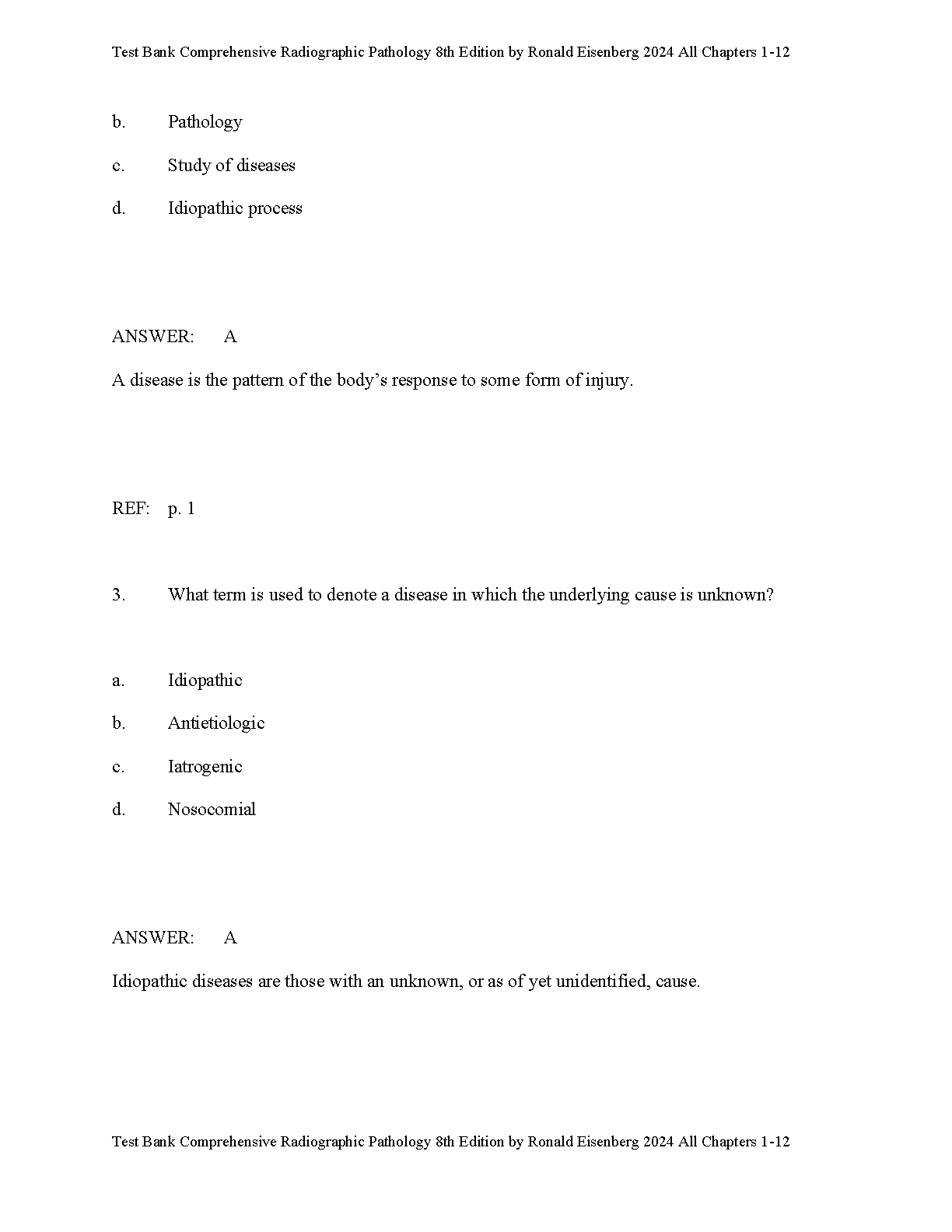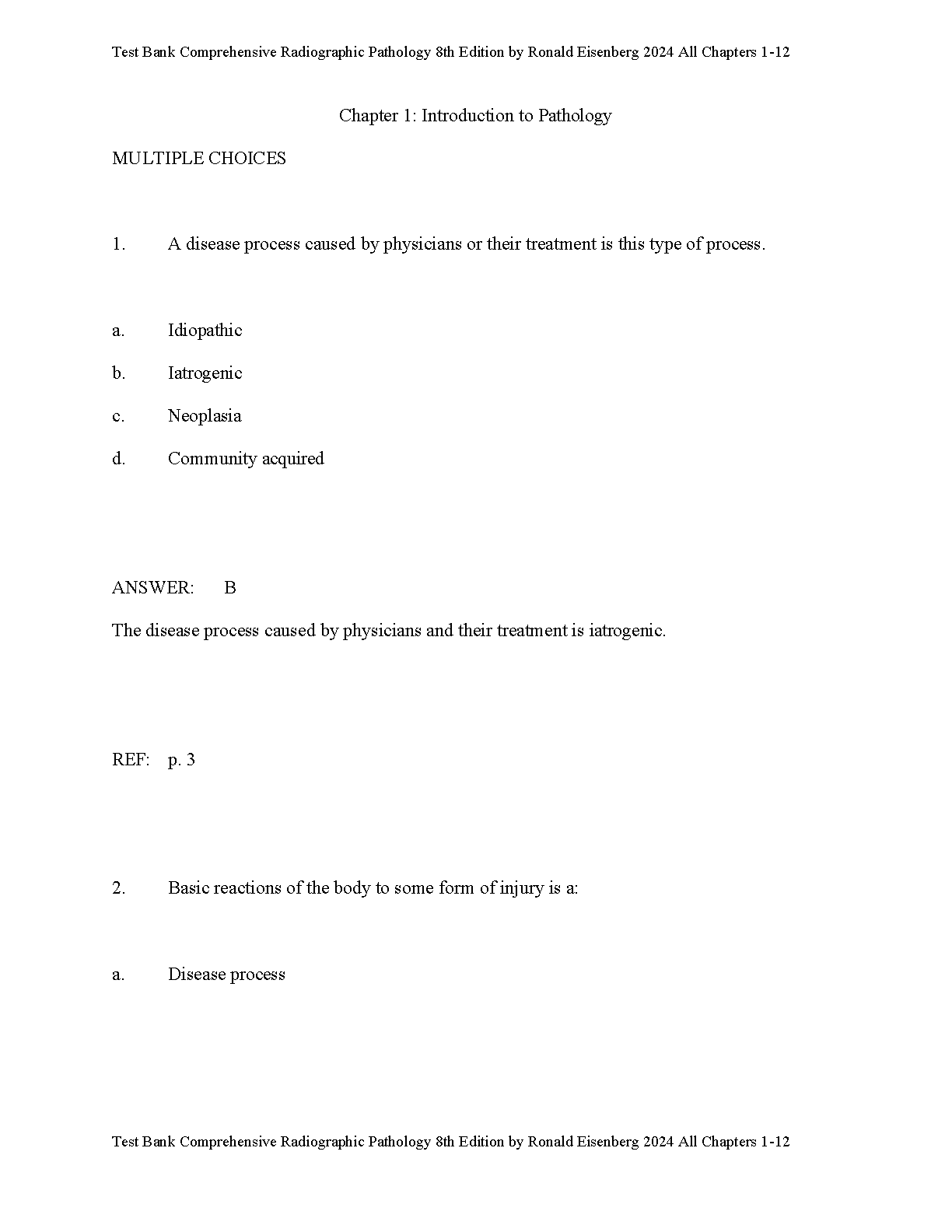 Test Bank for Comprehensive Radiographic Pathology, 8th Edition by Ronald L. Eisenberg & Nancy M. Johnson