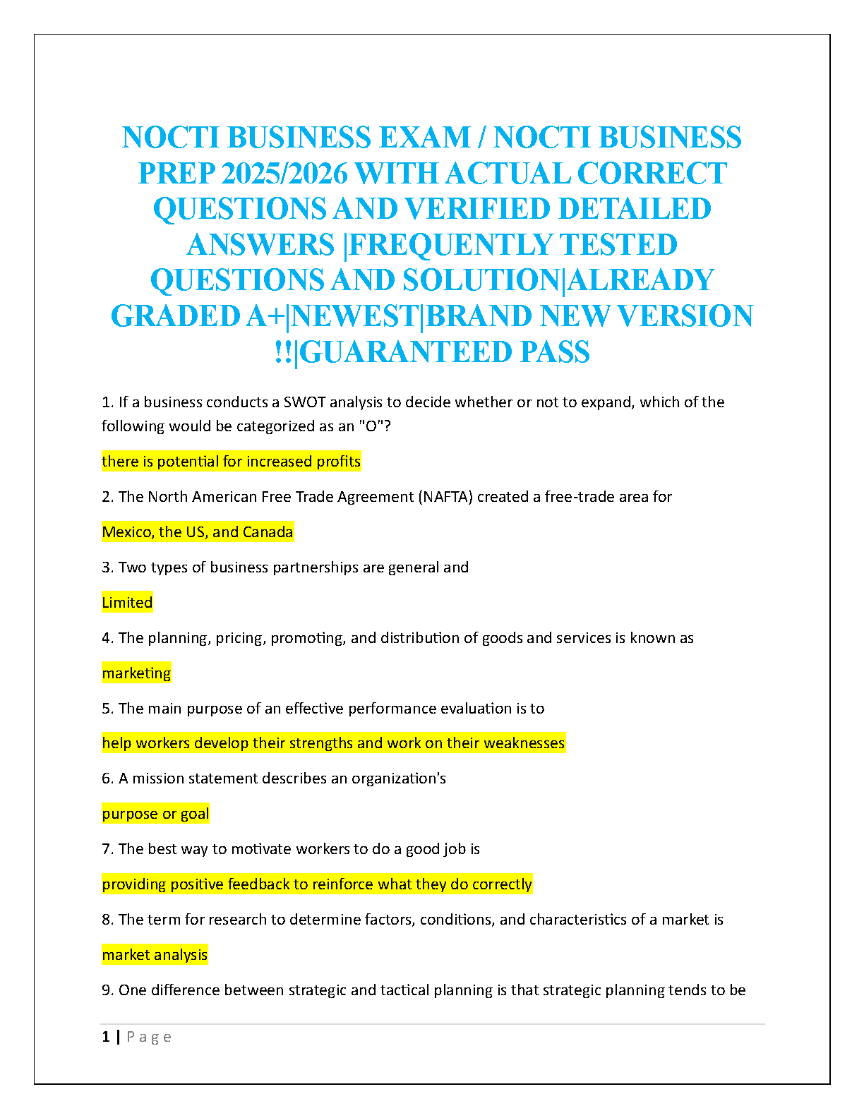 Achieve top marks on your NOCTI Business Exam with our definitive 2025-2026 Test Bank. This essential study guide features a complete collection of real exam questions, each paired with a verified, in-depth answer and explanation. Focus your preparation on the most frequently tested concepts and master the material needed to secure an A+ grade. This up-to-date resource is your key to passing the exam confidently on your first attempt and avoiding costly resits.
