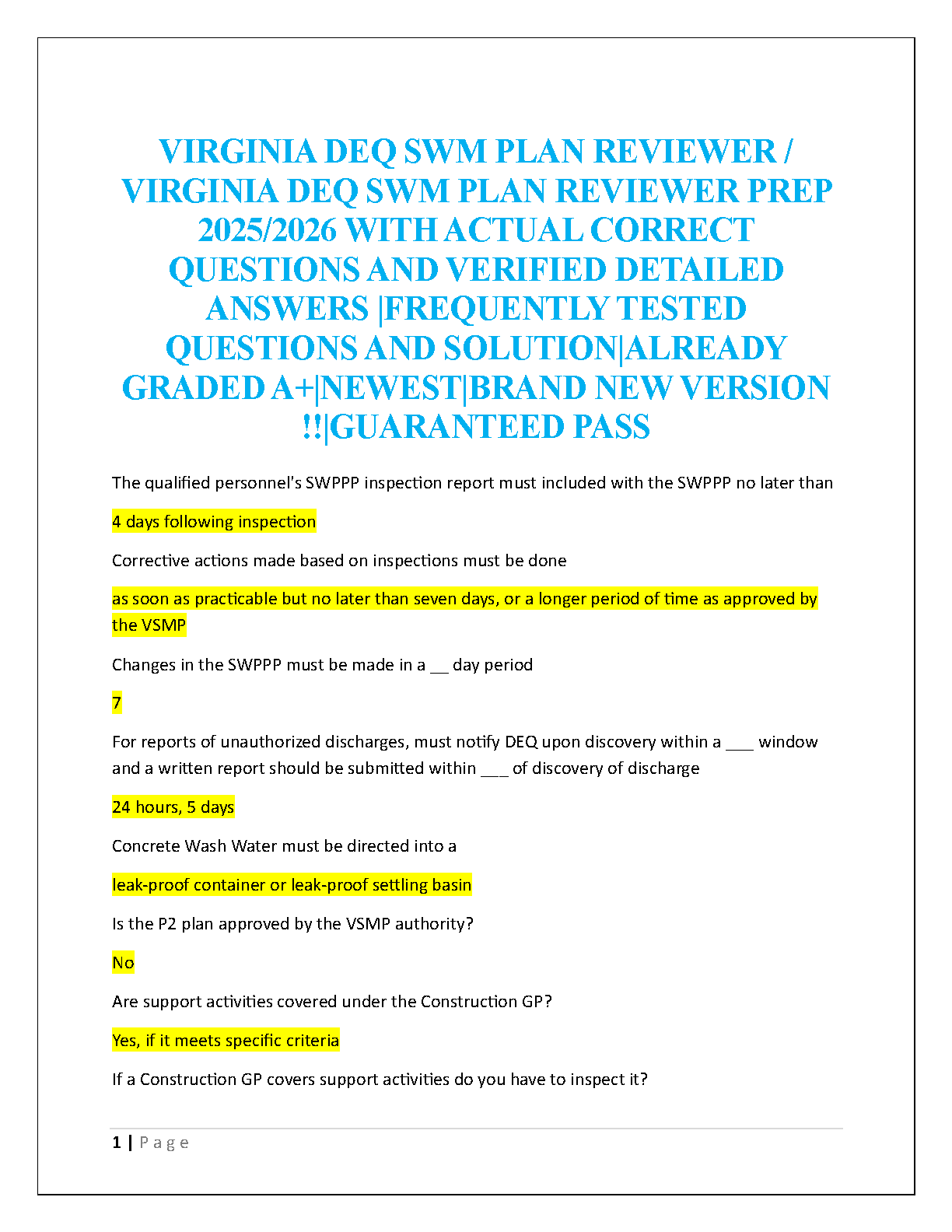 Master the Virginia DEQ SWM Plan Reviewer Exam 2025/2026: Complete Test Bank with Verified Questions & Answers for a Guaranteed Pass