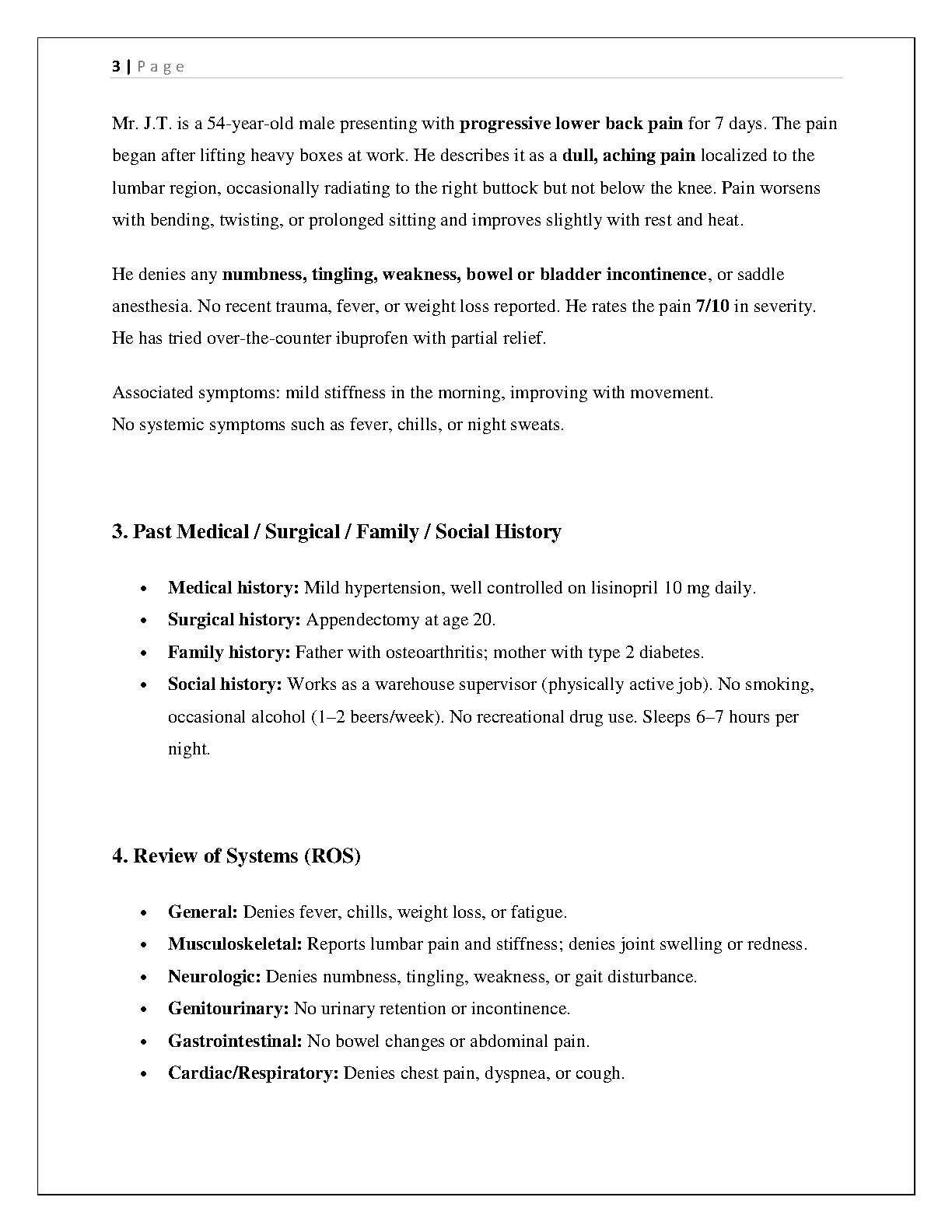 Master i-Human Week 9: Back Pain Case Study (54-Year-Old Male) - Detailed HPI, PE, and Management Plan for 2025/2026 Exam Success