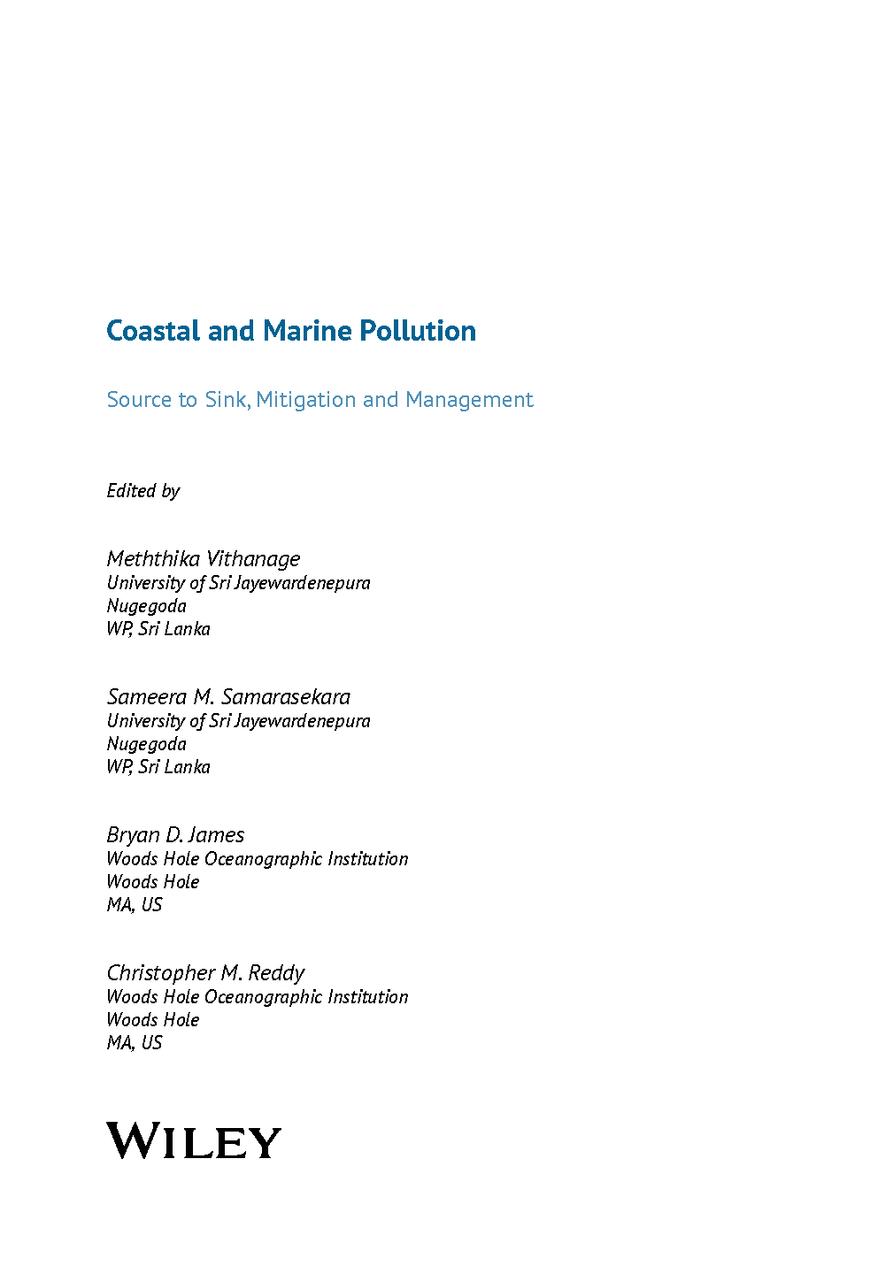 Coastal and Marine Pollution: Source to Sink, Mitigation and Management, 1st Edition by Vithanage, Samarasekara, James, & Reddy | 2025/2026 Exam Success Guide