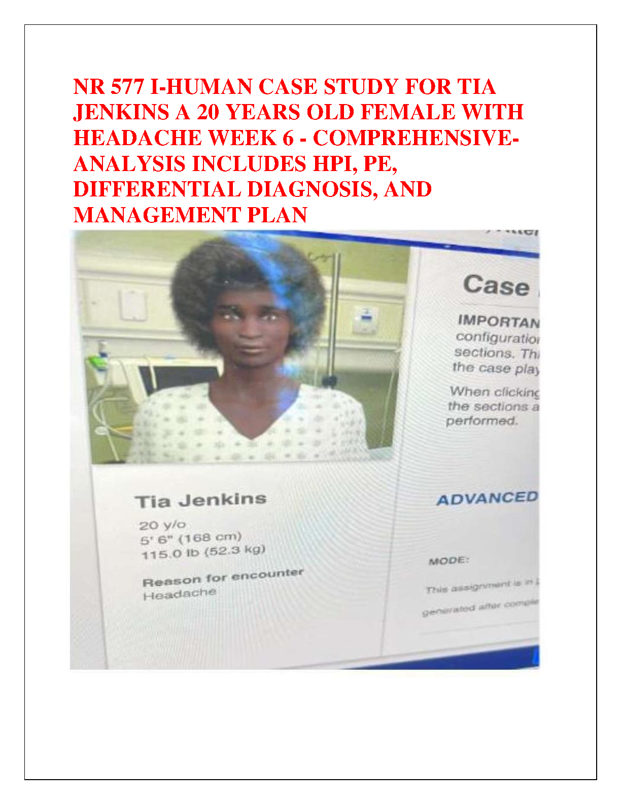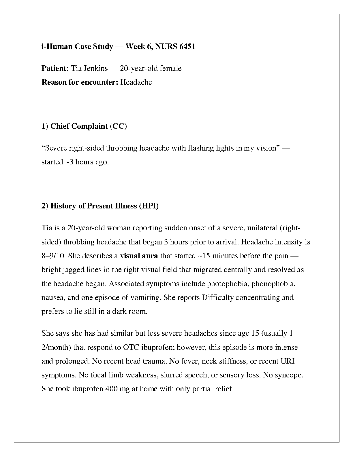 NR 577 Week 6 i-Human: Tia Jenkins Headache Case Study | Complete 2025/2026 Guide to Ace Your Exam