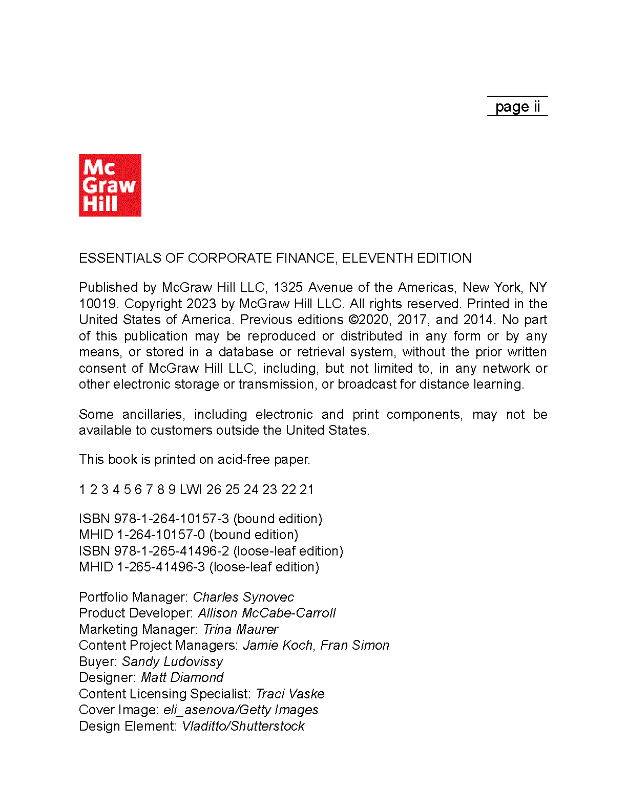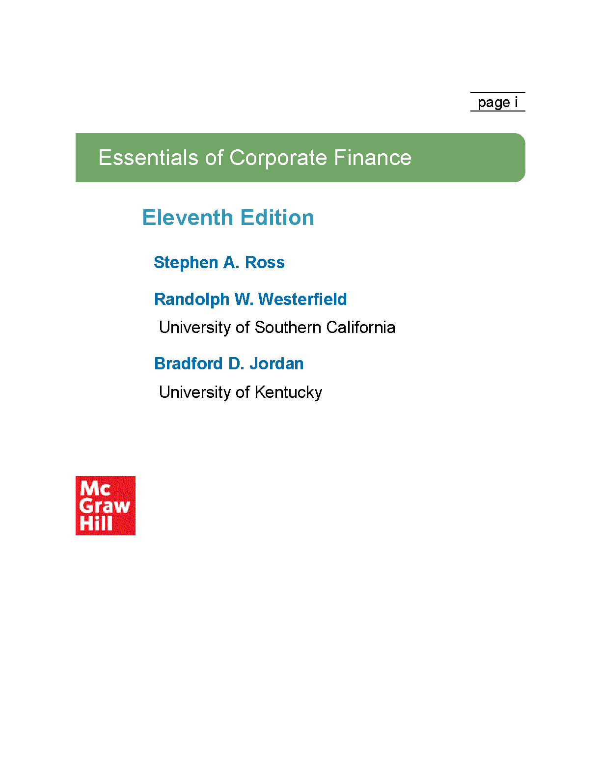 Test Bank for Essentials of Corporate Finance, 11th Edition by Stephen A. Ross, Randolph W. Westerfield, Bradford D. Jordan