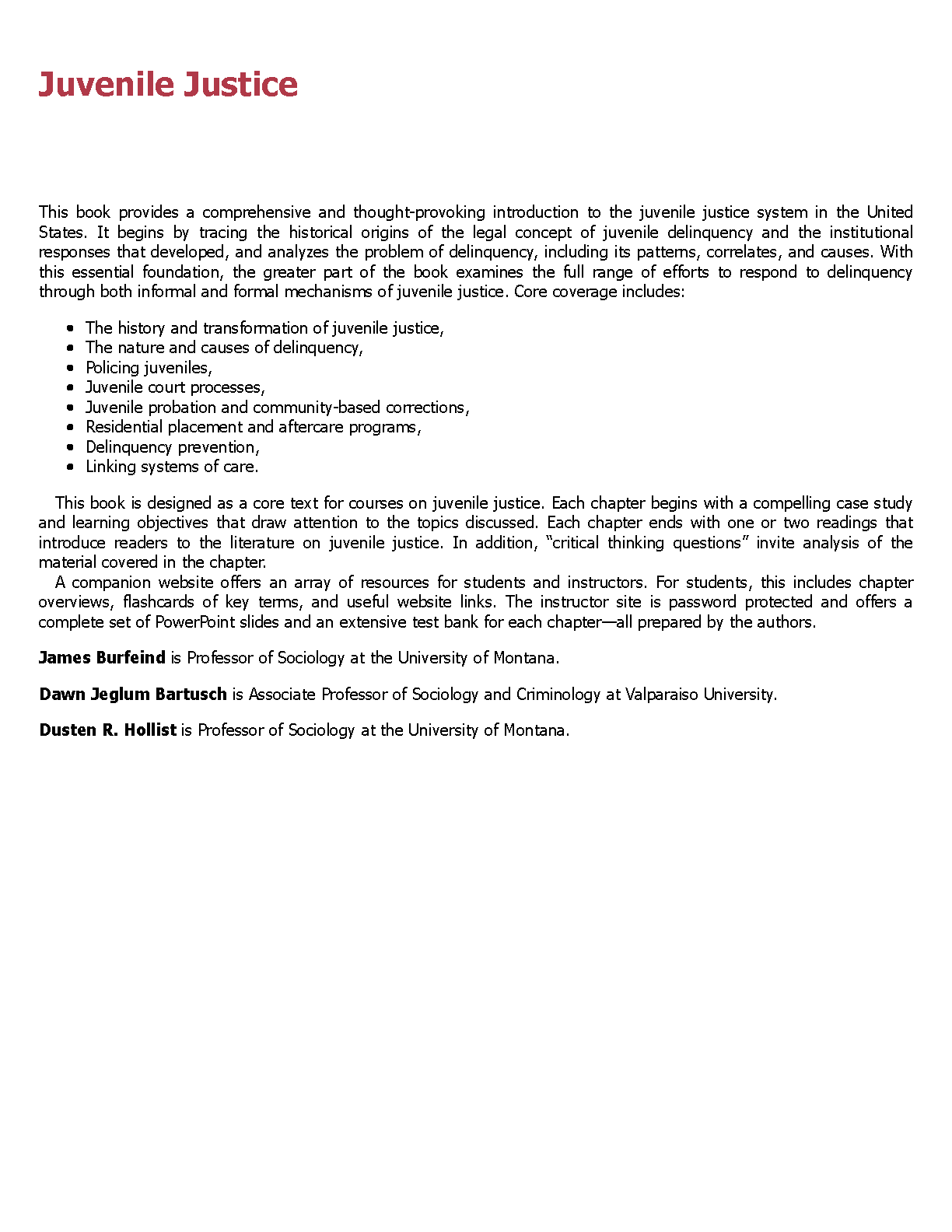 Test Bank for Juvenile Justice: An Introduction to Process, Practice, and Research, 3rd Edition by James Burfeind, Dawn Jeglum Bartusch, Dusten R. Hollist