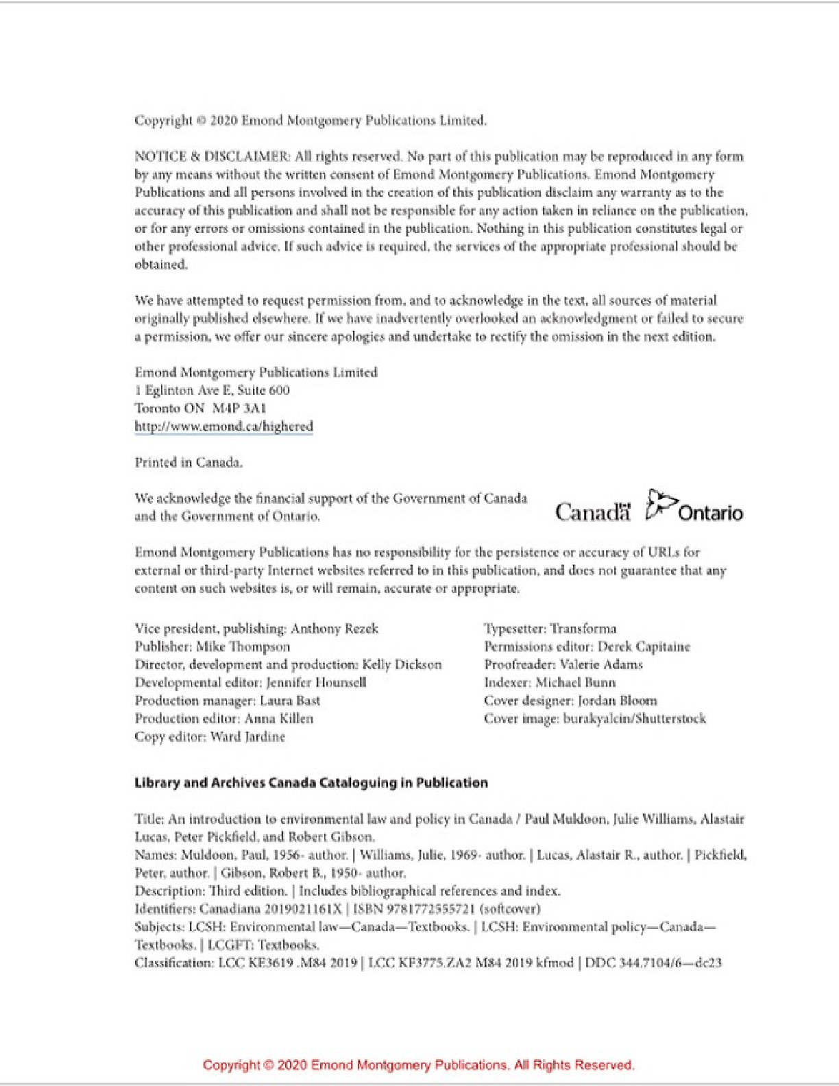 Test Bank for An Introduction to Environmental Law and Policy in Canada, 3rd Edition by Paul Muldoon, Julie Williams, Alastair Lucas, Robert B. Gibson, and Peter Pickfield