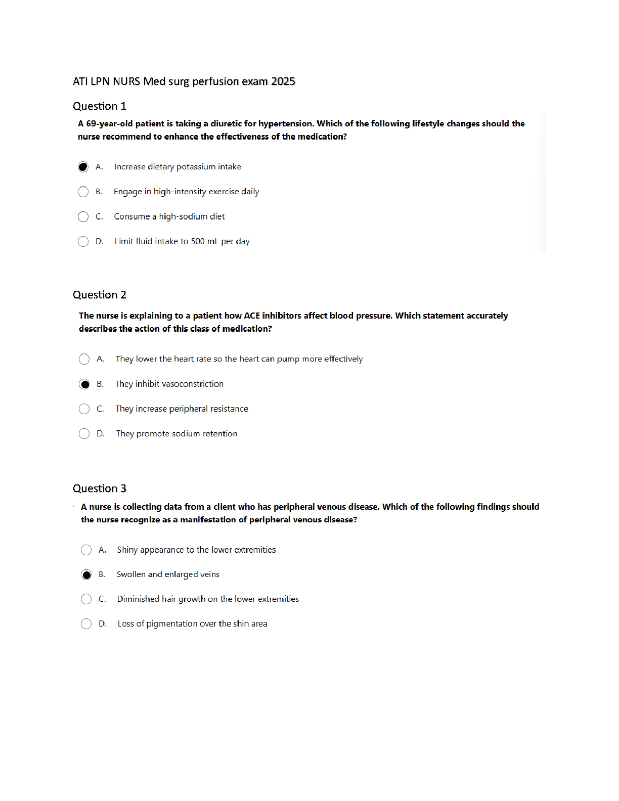 Get ready to ace your nursing exams with the most up-to-date 2025 ATI LPN Med-Surg Perfusion Exam Test Bank. This essential study guide provides a comprehensive collection of practice questions specifically designed to test your knowledge on crucial perfusion concepts, including hypertension, cardiovascular medications, and peripheral vascular diseases. Developed by Assessment Technologies Institute (ATI), this test bank is your key to understanding the material deeply, boosting your confidence, and successfully passing your LPN Med-Surg exam on the first try, avoiding any costly resits.