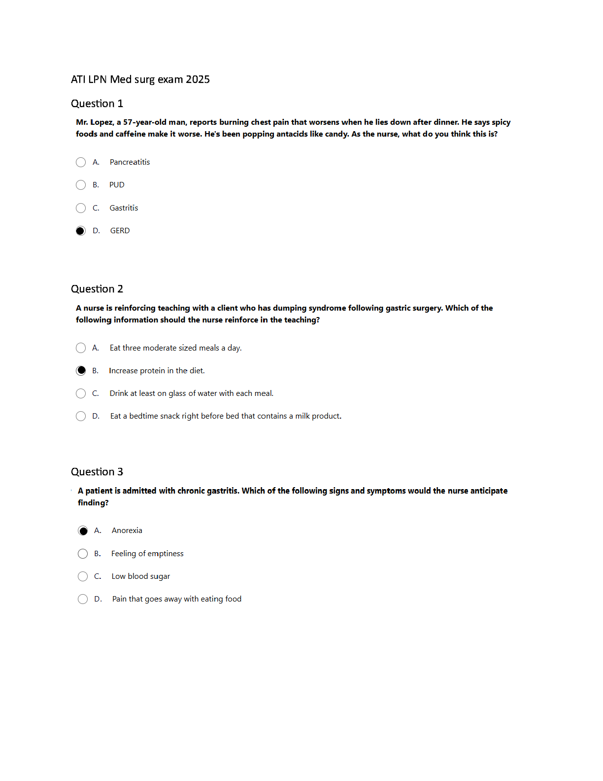 Prepare to excel in your upcoming nursing exams with the ATI LPN Med Surg Exam 2025 Test Bank. This comprehensive resource is packed with a wide range of practice questions and detailed, verified answers that cover all the essential medical-surgical nursing topics. Designed specifically for LPN students, this test bank simulates the real exam environment, helping you build confidence and master critical concepts. Stop stressing and start studying smart. This is your ultimate guide to passing the ATI Med Surg exam on your first attempt and launching your nursing career with success.