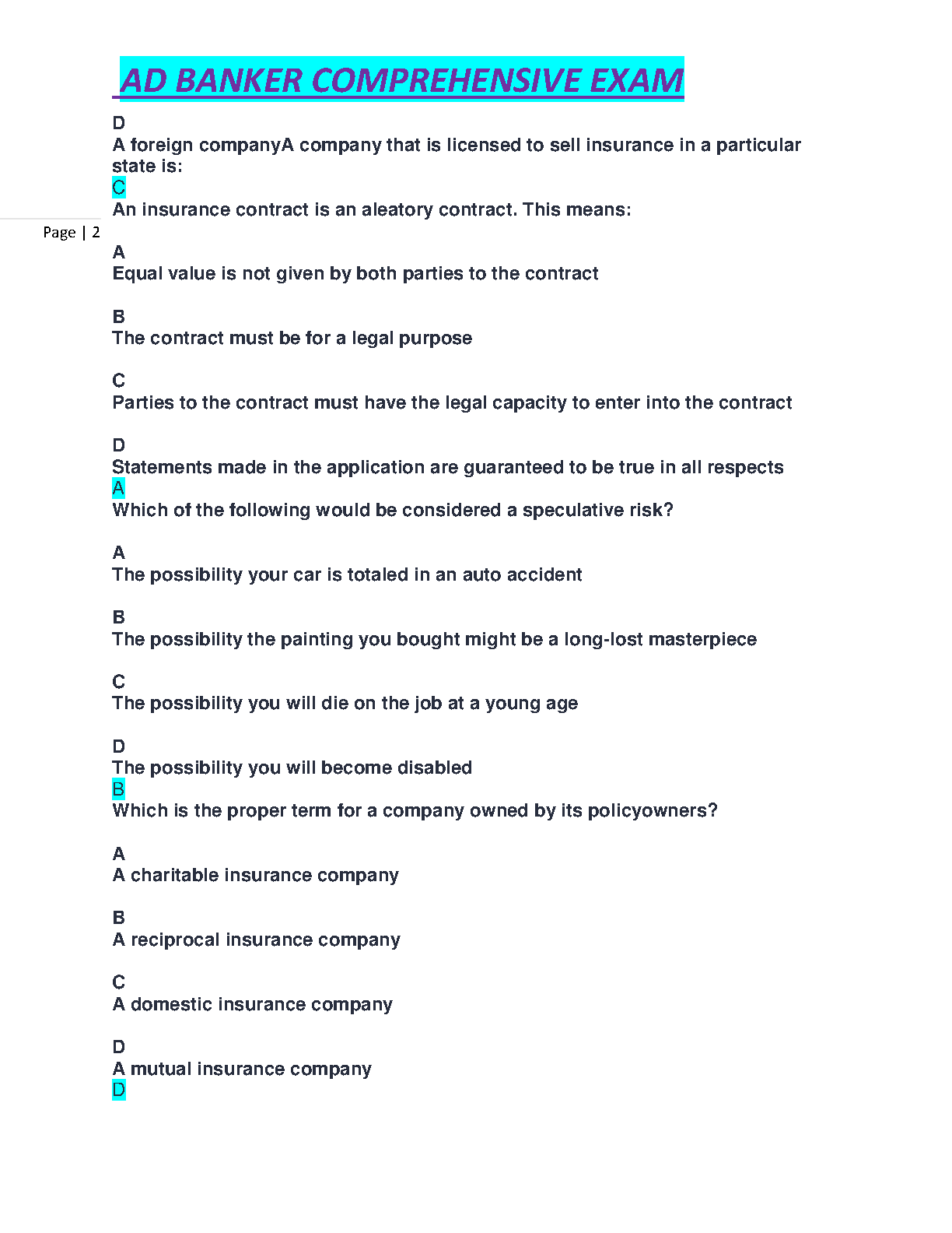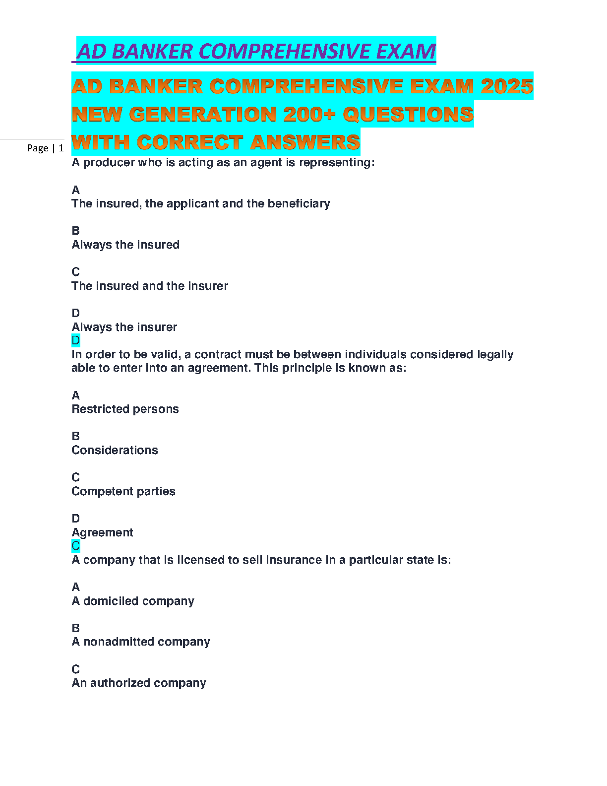 Ace your licensing exam with the latest AD Banker Comprehensive Exam Test Bank for 2025. This essential study guide features over 200 new-generation questions, each complete with a verified, correct answer. Designed by A.D. Banker & Company, this resource is your key to mastering the material, building confidence, and passing your comprehensive exam on the very first try. Get immediate access to the Q&A you need for success in the 2025 exam cycle.